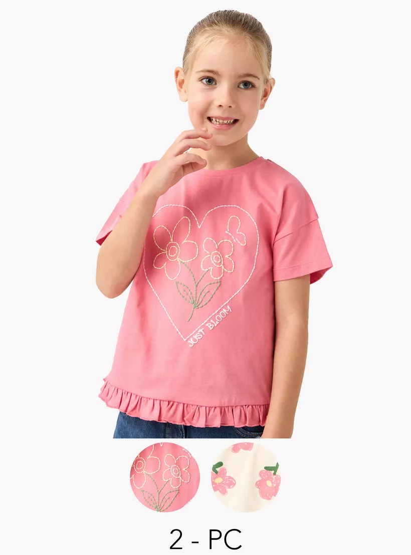 Juniors Assorted T-shirt with Short Sleeves and Round Neck – Set of 2