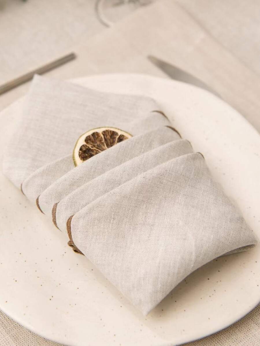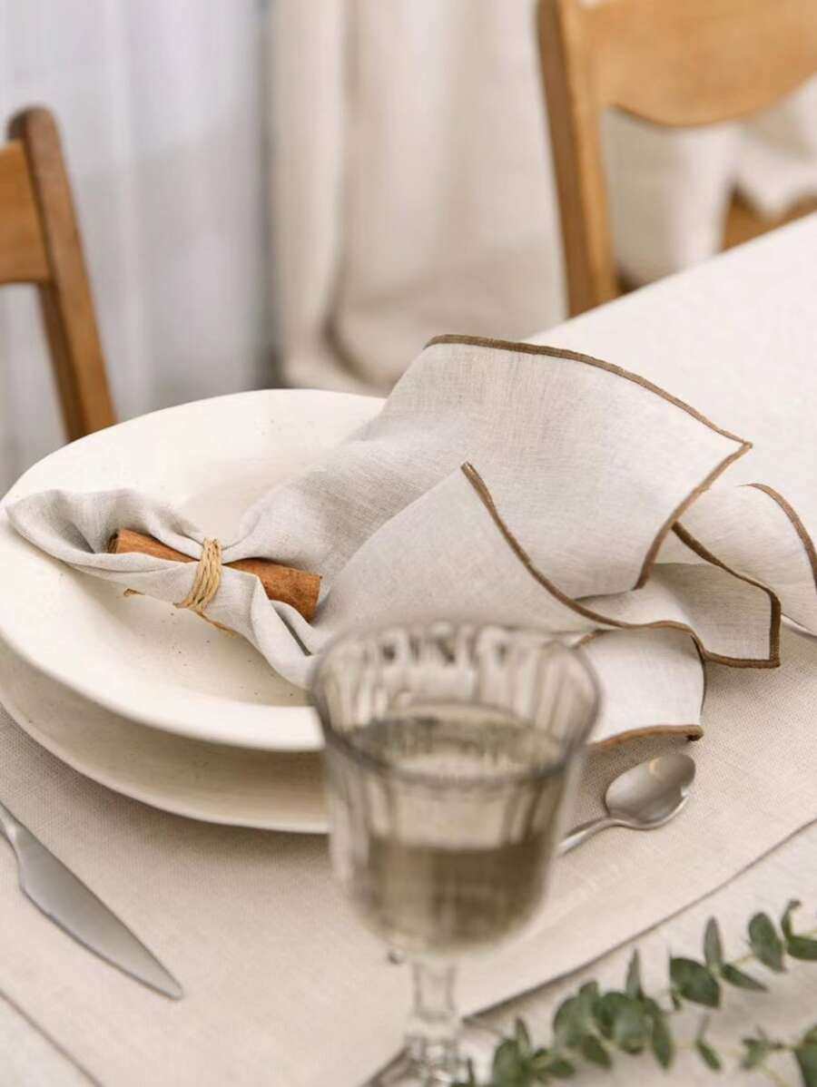 / 1/2/6/10pcs Brown Hem Beige Cloth Napkin, Suitable For Wedding, Valentine’s Day And Home Decoration