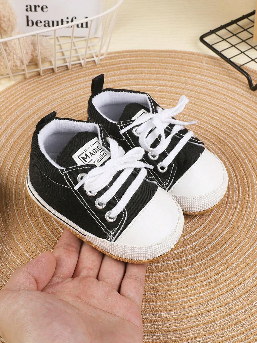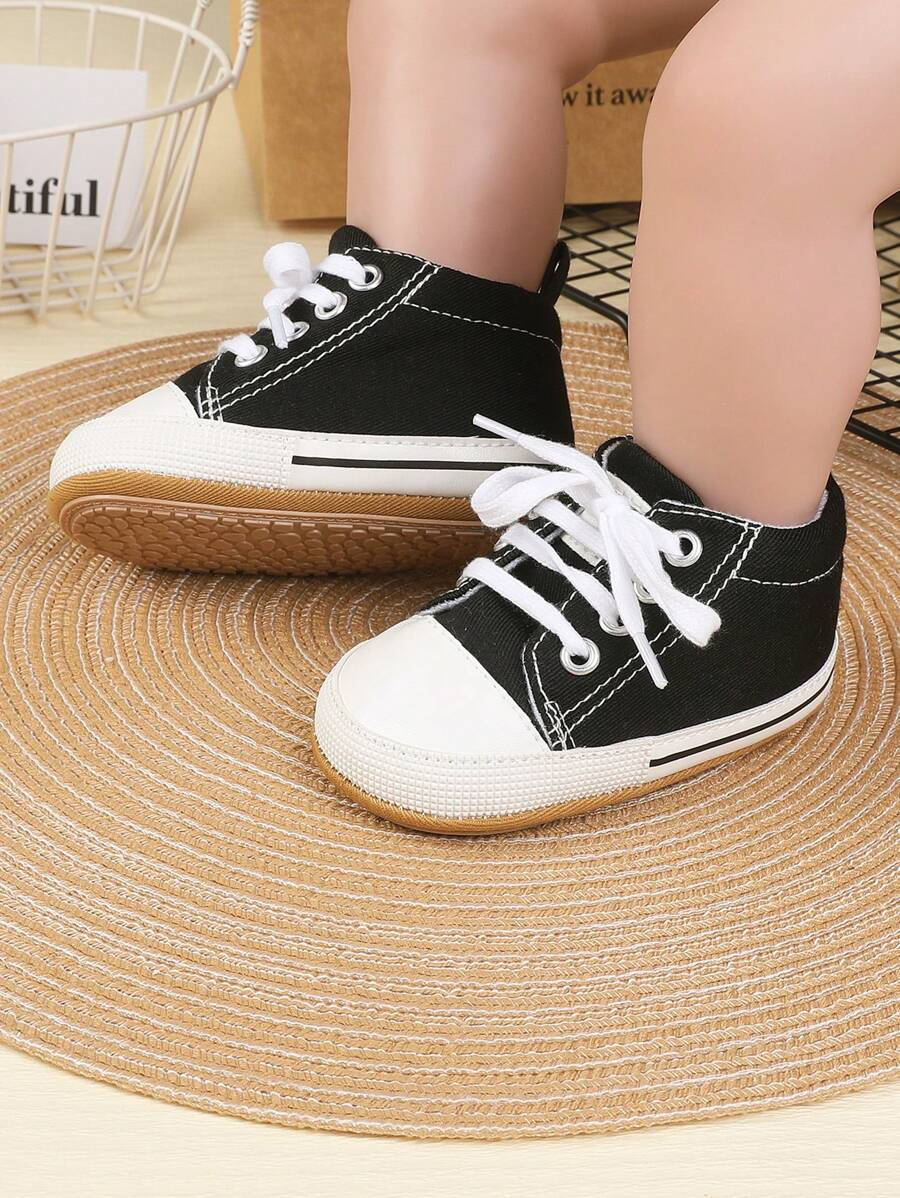Home / SHEIN / Baby / Footwear / 1 Pair Of Boys And Girls Solid Color Canvas Lace-Up Design Flat Sole Versatile Non-Slip Sneakers Party Soft Rubber Sole Toddler Shoes Suitable For Autumn