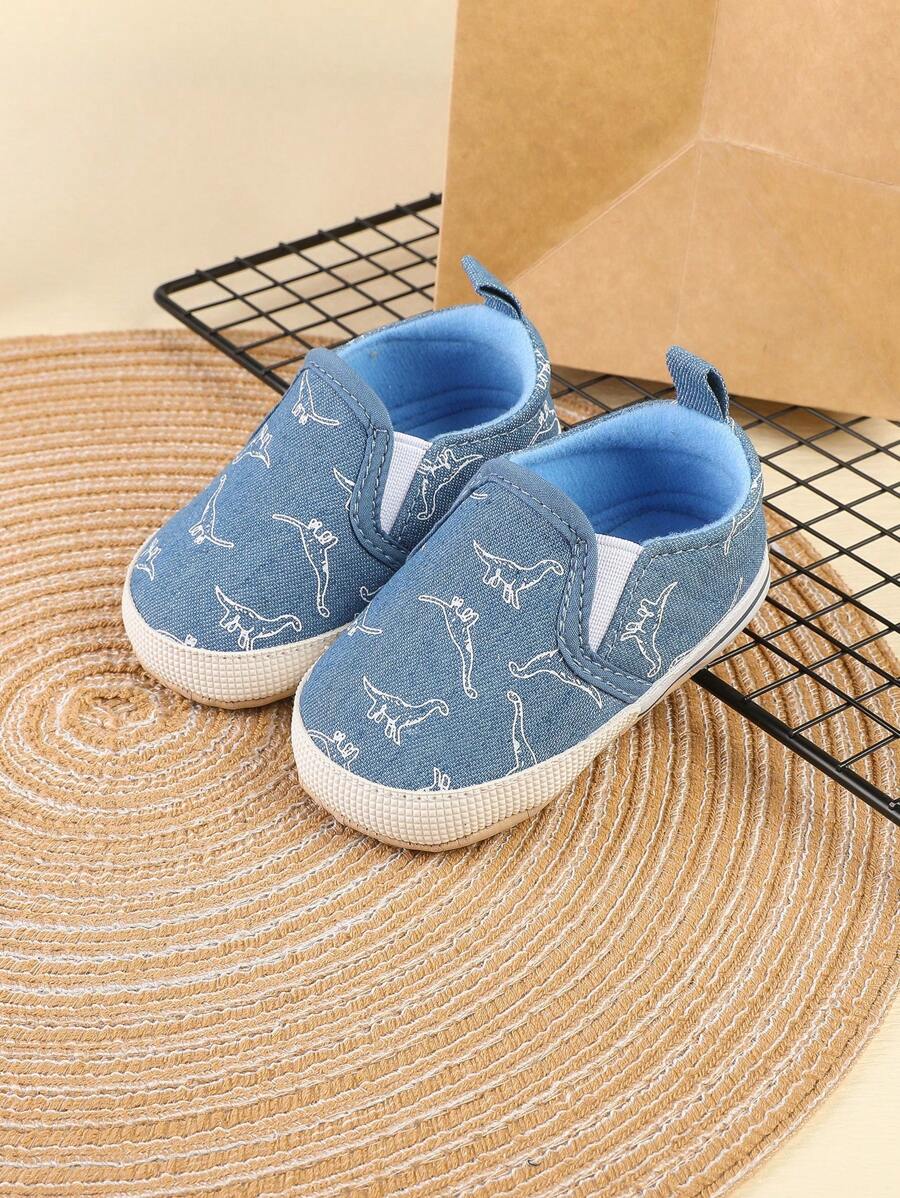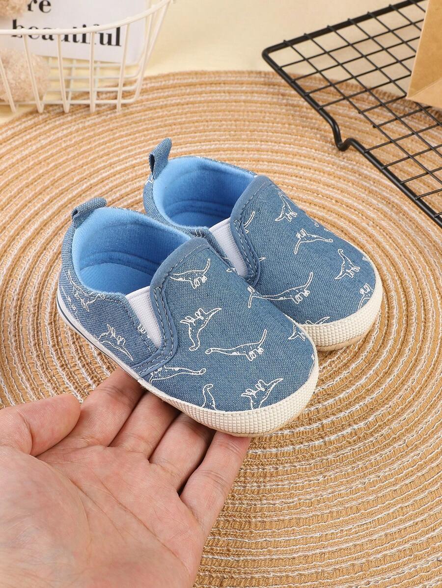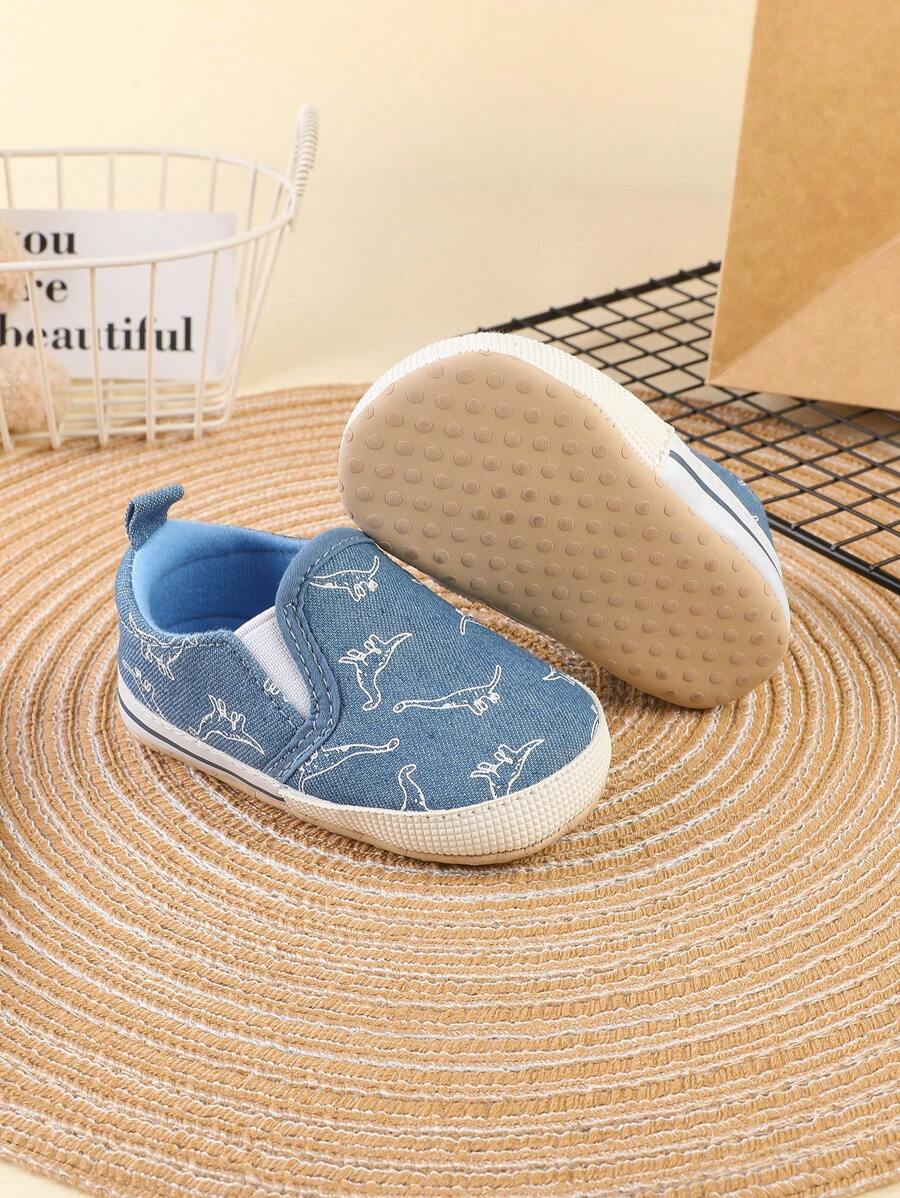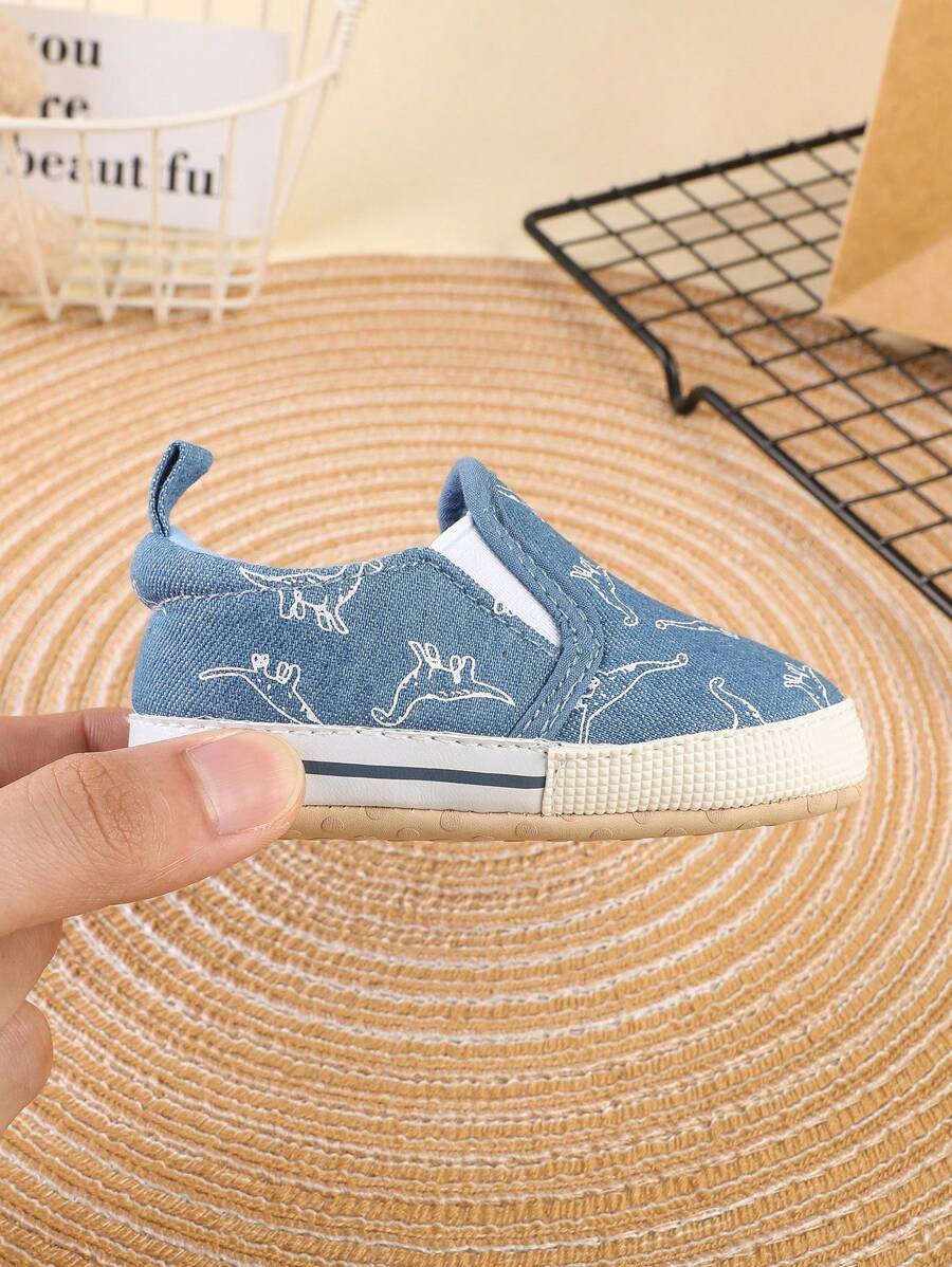 / 1 Pair Of Boys’ Dinosaur Pattern Denim Slip-On Design, Flat Bottom, Non-Slip, Comfortable And Versatile Cartoon Sneakers, Suitable For Summer