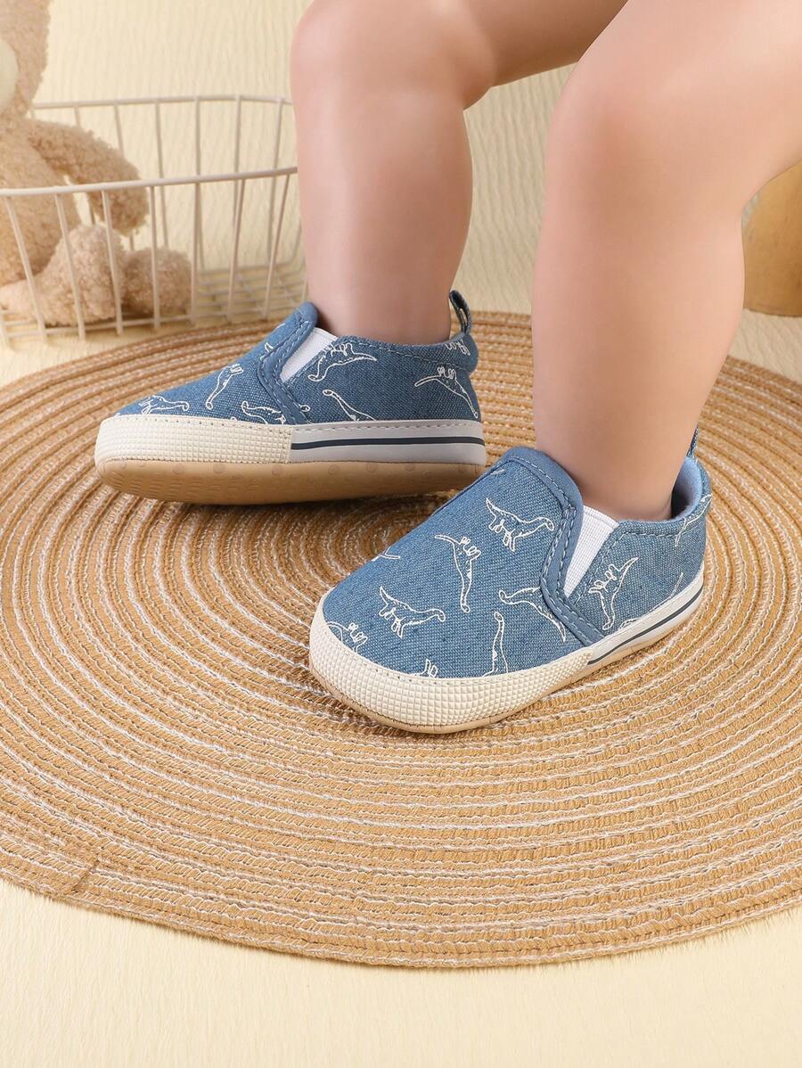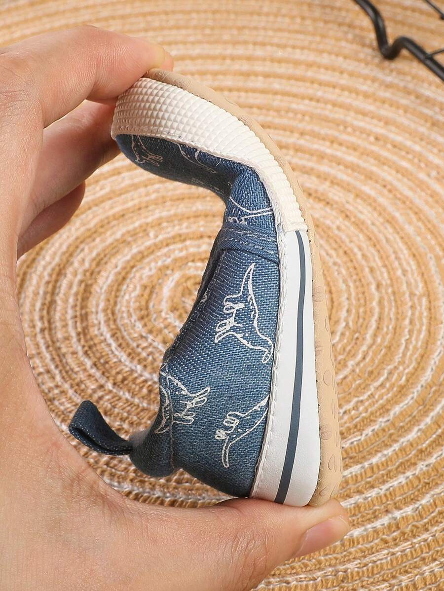 1 Pair Of Boys' Dinosaur Pattern Denim Slip-On Design, Flat Bottom, Non-Slip, Comfortable And Versatile Cartoon Sneakers, Suitable For Summer quantity