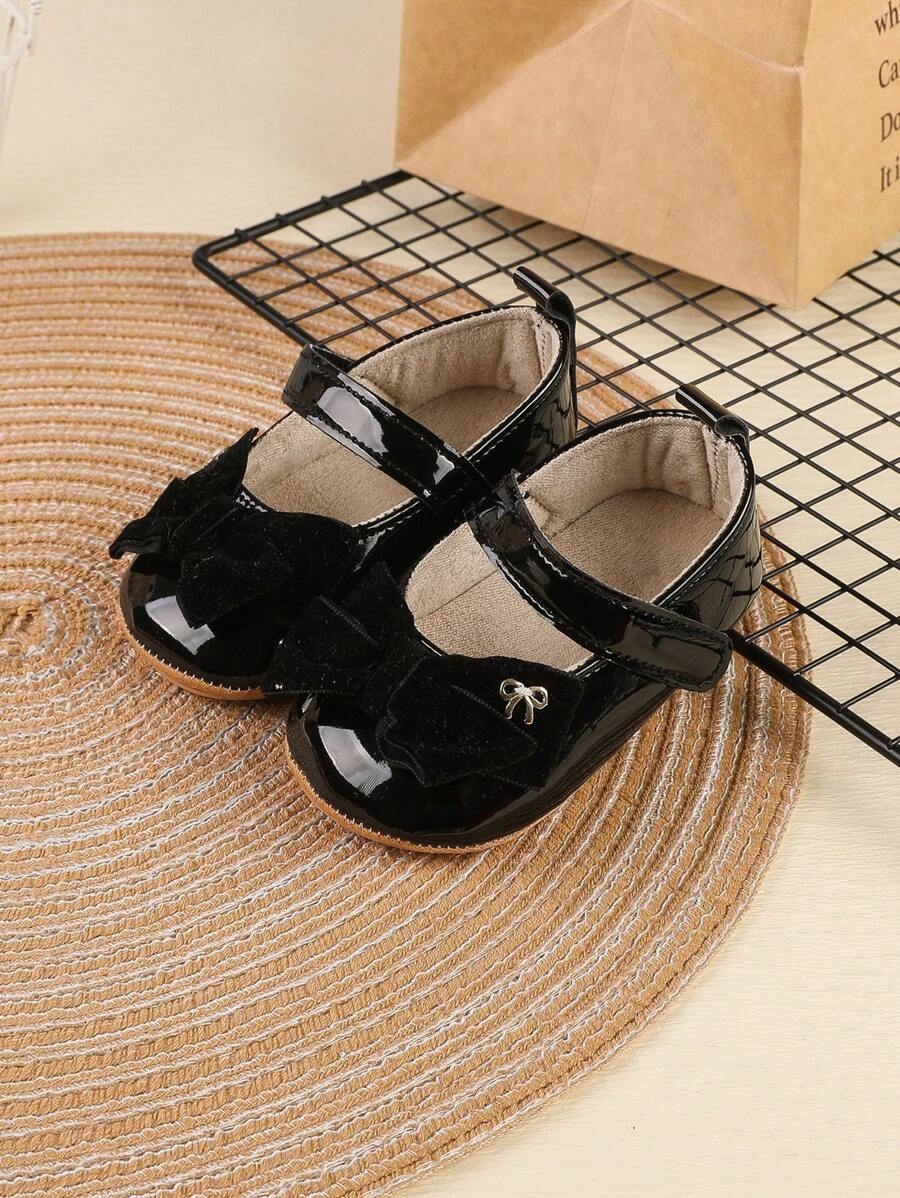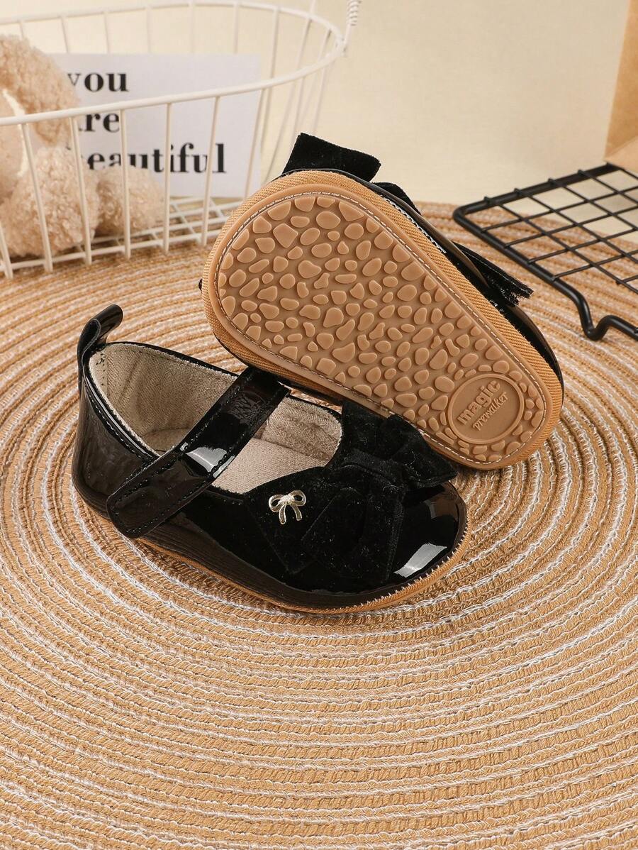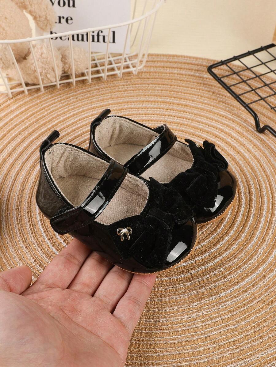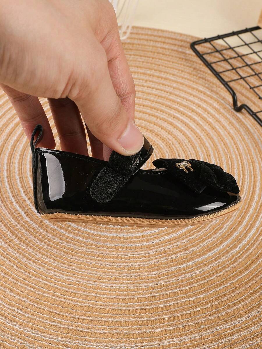 Home / SHEIN / Baby / Footwear / 1 Pair Of Girls Solid Color Shiny PU Bow Hook And Loop Design Flat Versatile Party Toddler Shoes Soft Rubber Sole Comfortable Princess Flats Suitable For Spring And Autumn