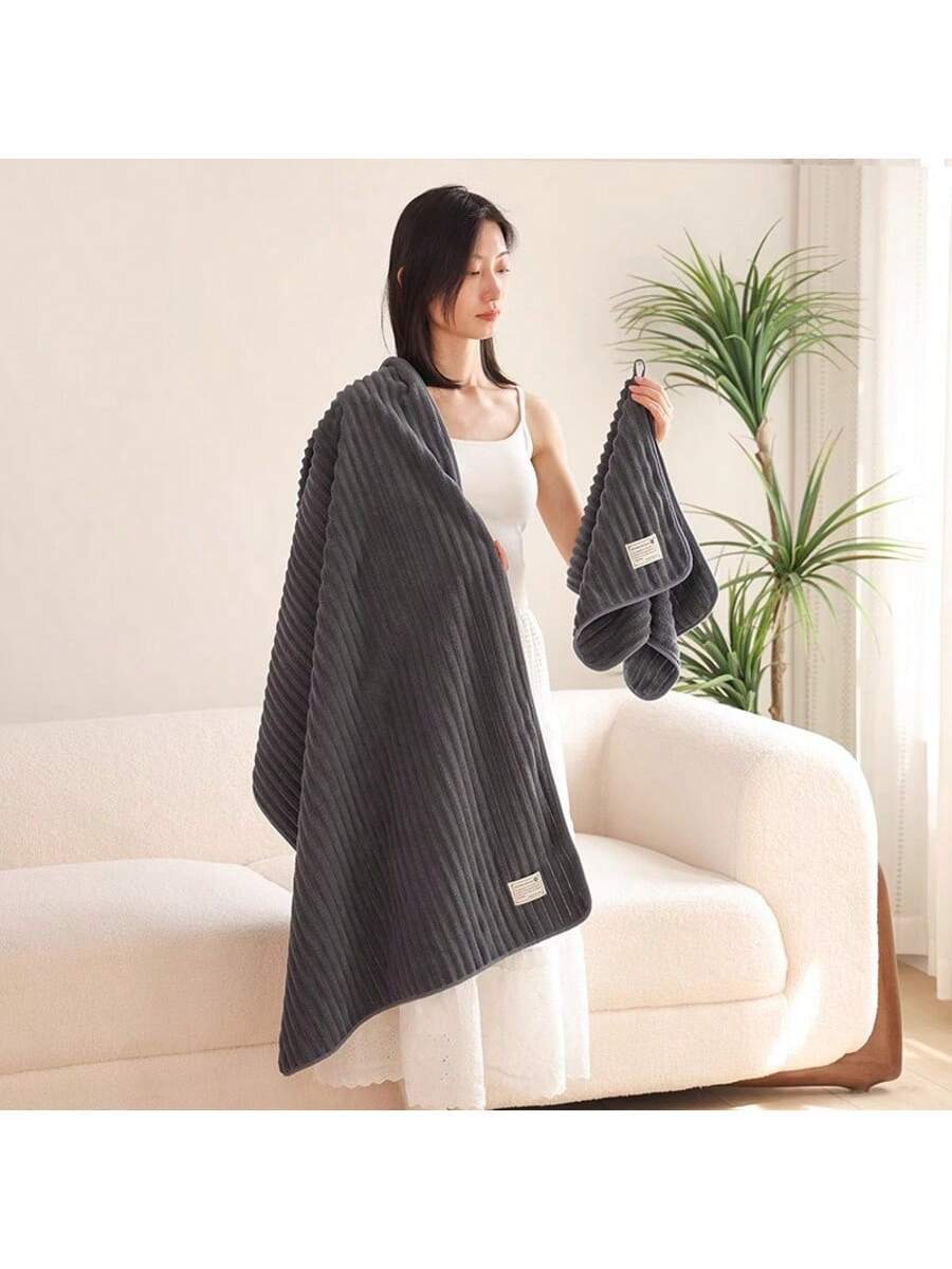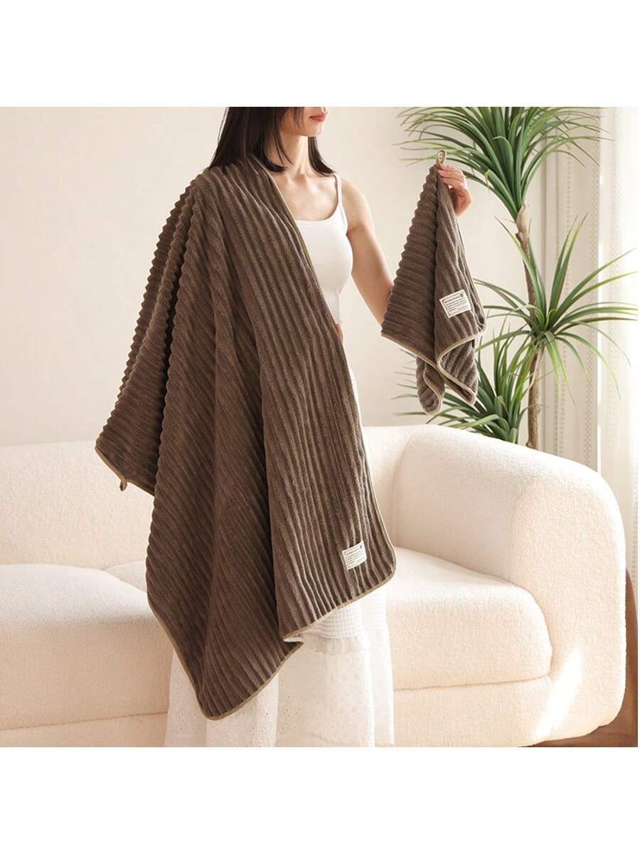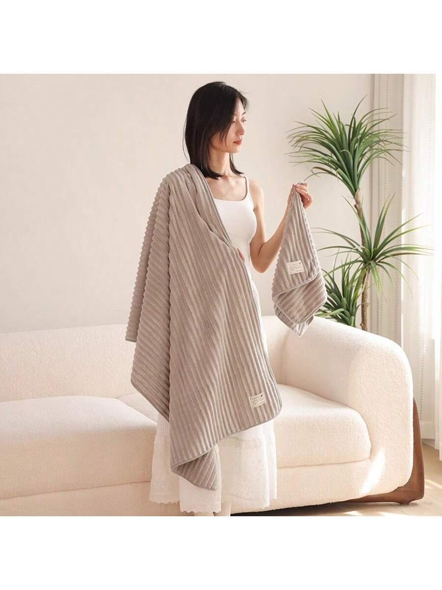 1 Pc Striped Super Absorbent Microfiber Bath Towel – Fast Drying, Ideal For Home, Hotel, And Spa Use