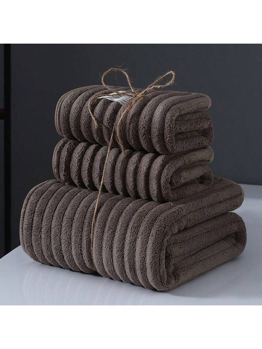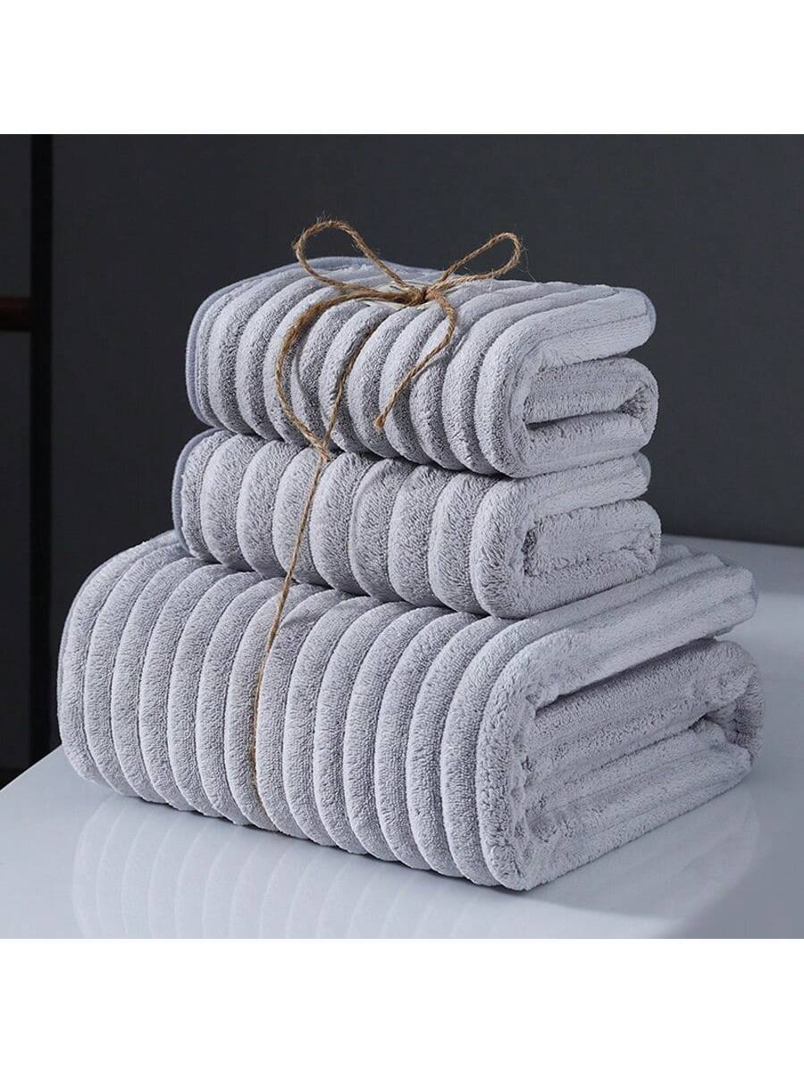 1 Pc Striped Super Absorbent Microfiber Bath Towel - Fast Drying, Ideal For Home, Hotel, And Spa Use quantity