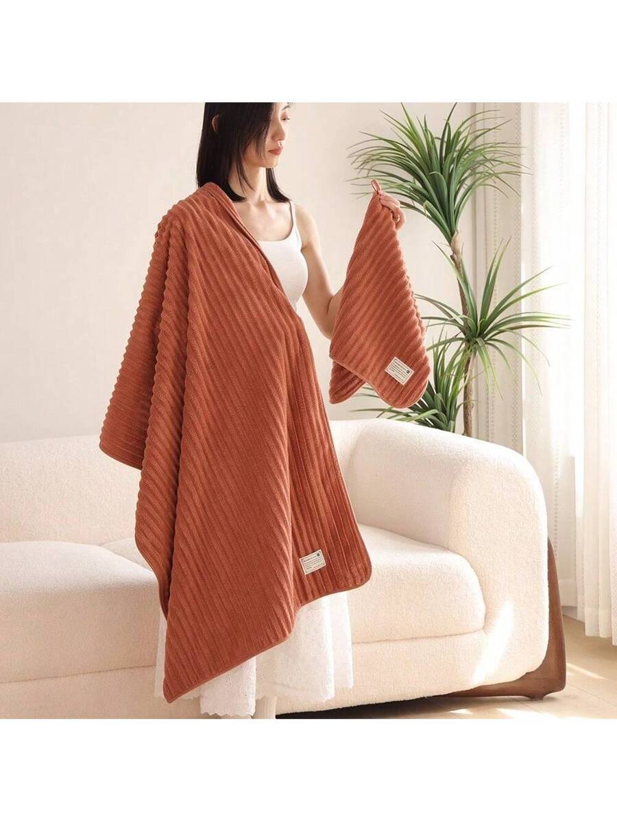 / 1 Pc Striped Super Absorbent Microfiber Bath Towel – Fast Drying, Ideal For Home, Hotel, And Spa Use