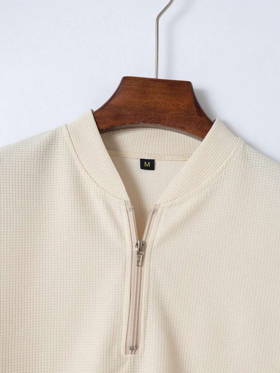 Upgrade your wardrobe with this Men’s Solid Color Waffle Fabric 2-Piece Suit, designed for both comfort and effortless style. Crafted from premium waffle-textured fabric, this set includes a short-sleeve polo shirt with a modern zip collar and matching long pants for a sleek, put-together look.