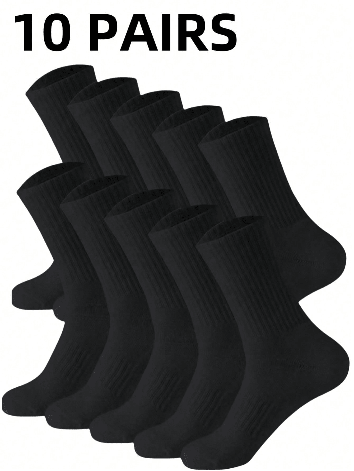 10 Pairs Solid Color Mid-Calf Socks, Suitable For Both Men And Women Daily Wear