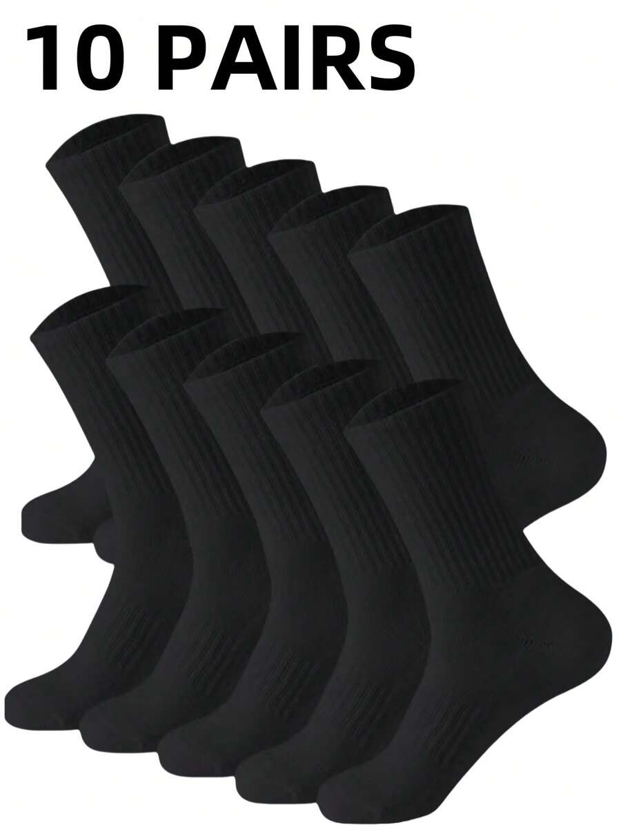 10 Pairs Solid Color Mid-Calf Socks, Suitable For Men And Women, Daily Wear