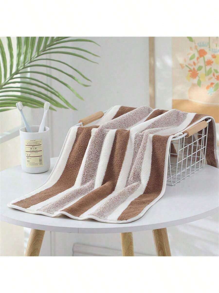 1PC/2PCS Piece Soft Coral Fleece Bath Towel Set – Absorbent Bath Towel Set For Home Use, 1 Bath Towel 1 Towel Set, Gym And Pool Bathroom Use, Soft And Absorbent Towel, Coral Fleece Wide Stripe Design For Hotel, Spa, Home Bathing And Face Washing, Suitable For Adults(Men And Women)