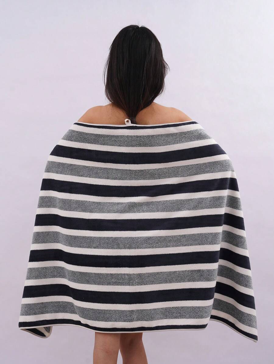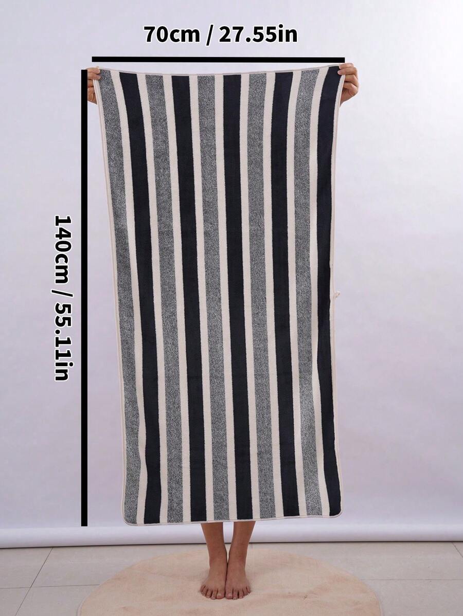 1pc Coral Fleece Ultra Soft Fiber Towel, Non-Shedding, Bathroom/Pool/Beach, Stripe Absorbent Washcloth Or Bath Towel