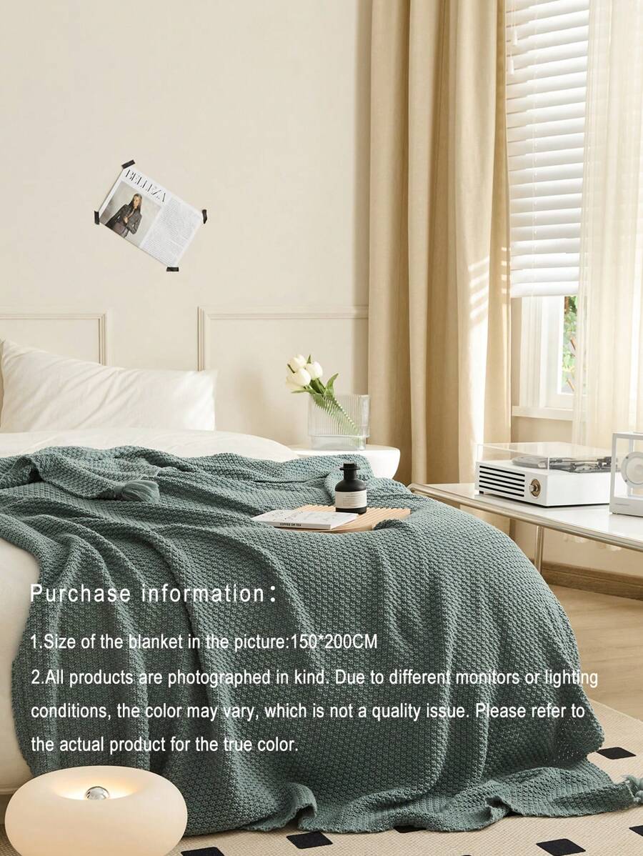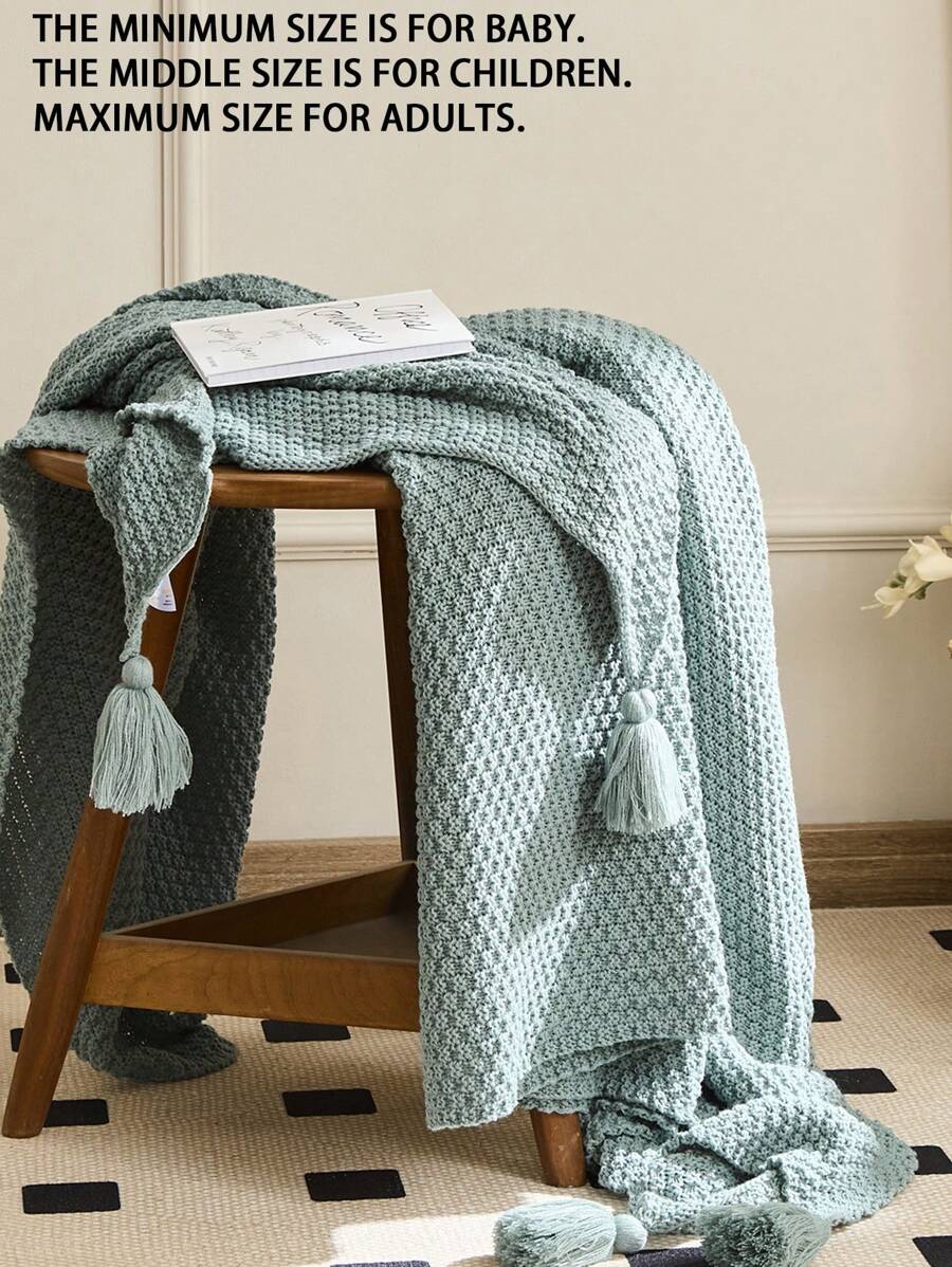 / 1pc Knitted Fabric Blanket, Boho Green Tassel Decor Blanket For Bed