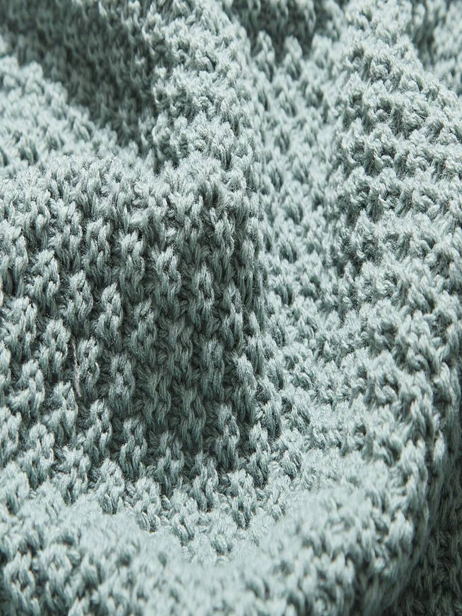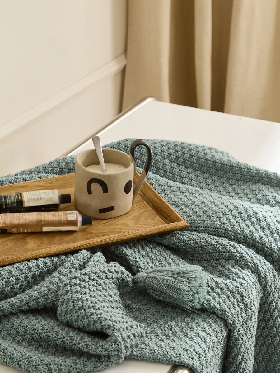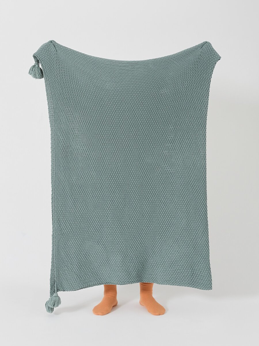 1pc Knitted Fabric Blanket, Boho Green Tassel Decor Blanket For Bed quantity