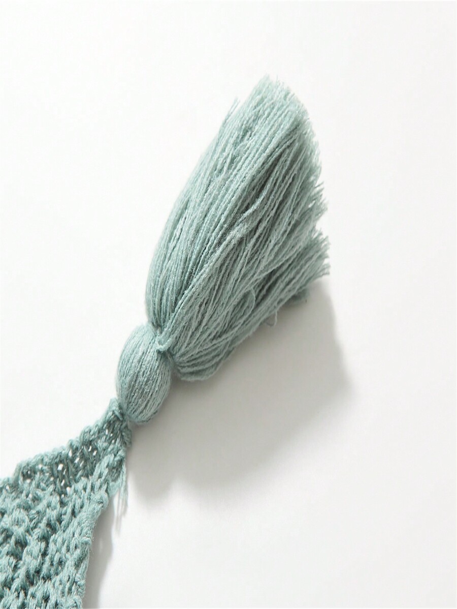 1pc Knitted Fabric Blanket, Boho Green Tassel Decor Blanket For Bed