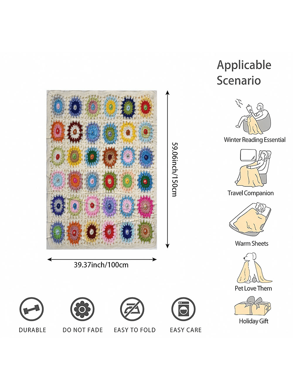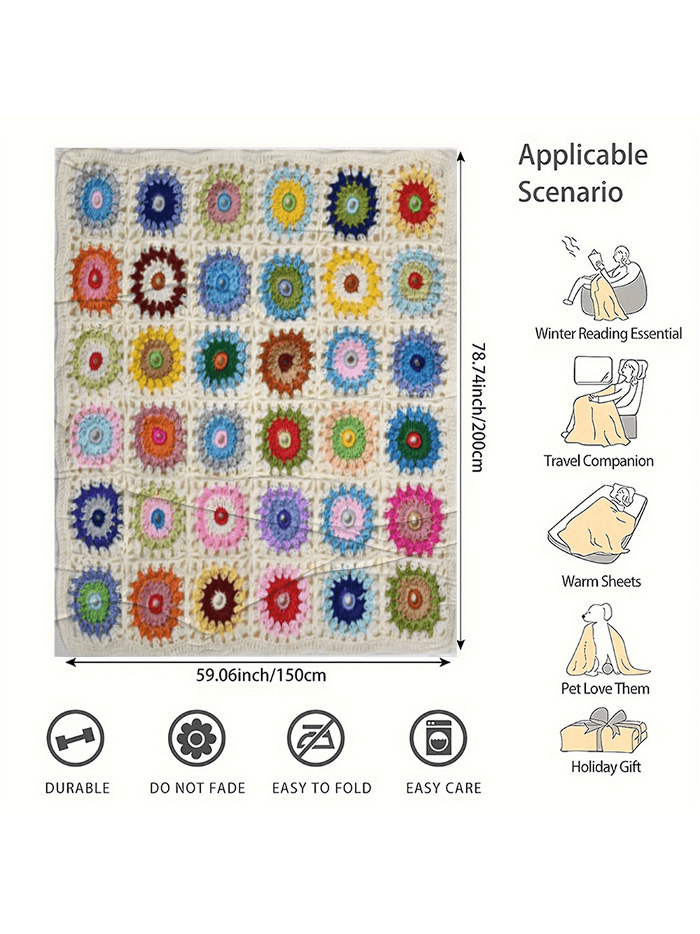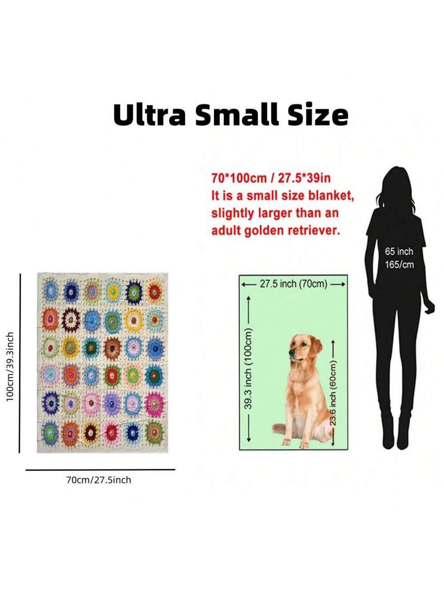 / 1pc Of Boho Crochet Flower Blanket, Soft And Comfortable Travel Blanket Made Of 100% Polyester