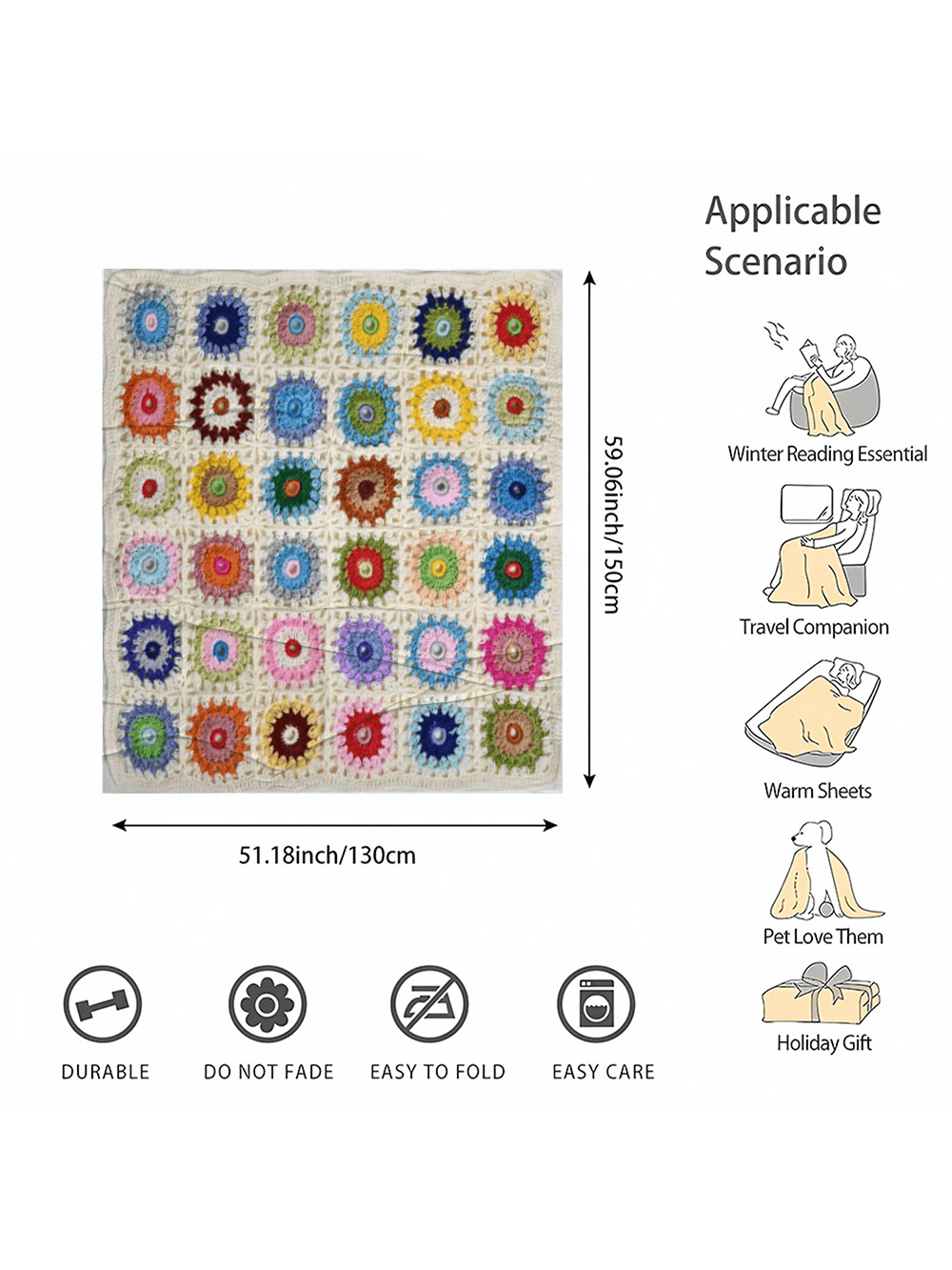 1pc Of Boho Crochet Flower Blanket, Soft And Comfortable Travel Blanket Made Of 100% Polyester quantity