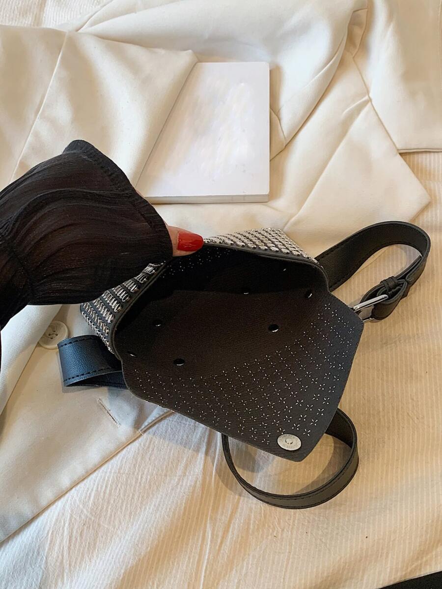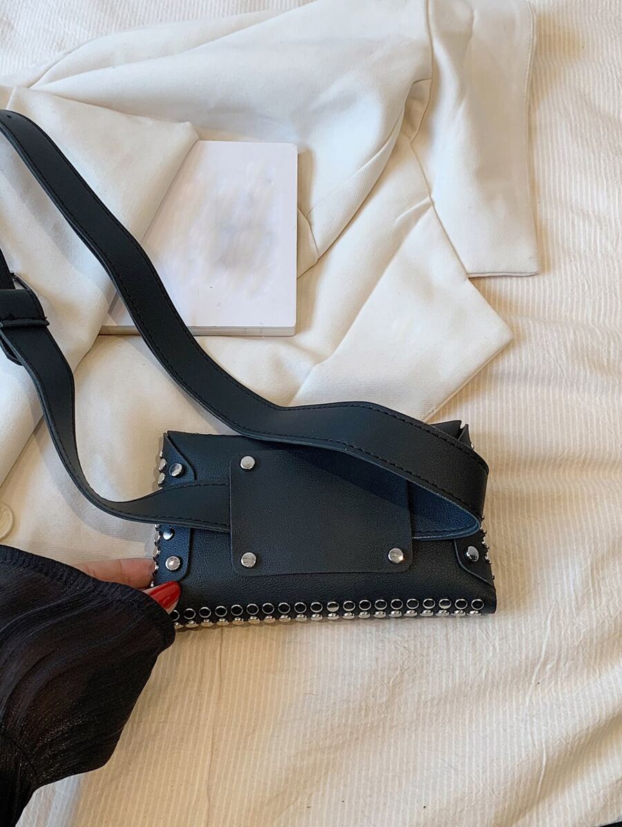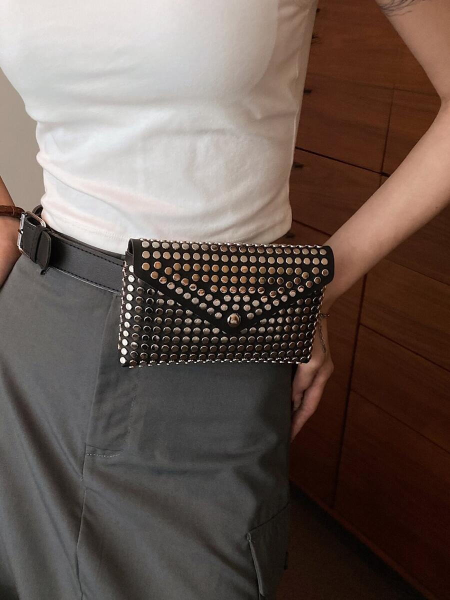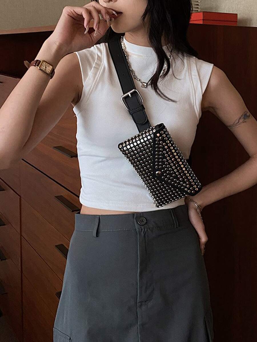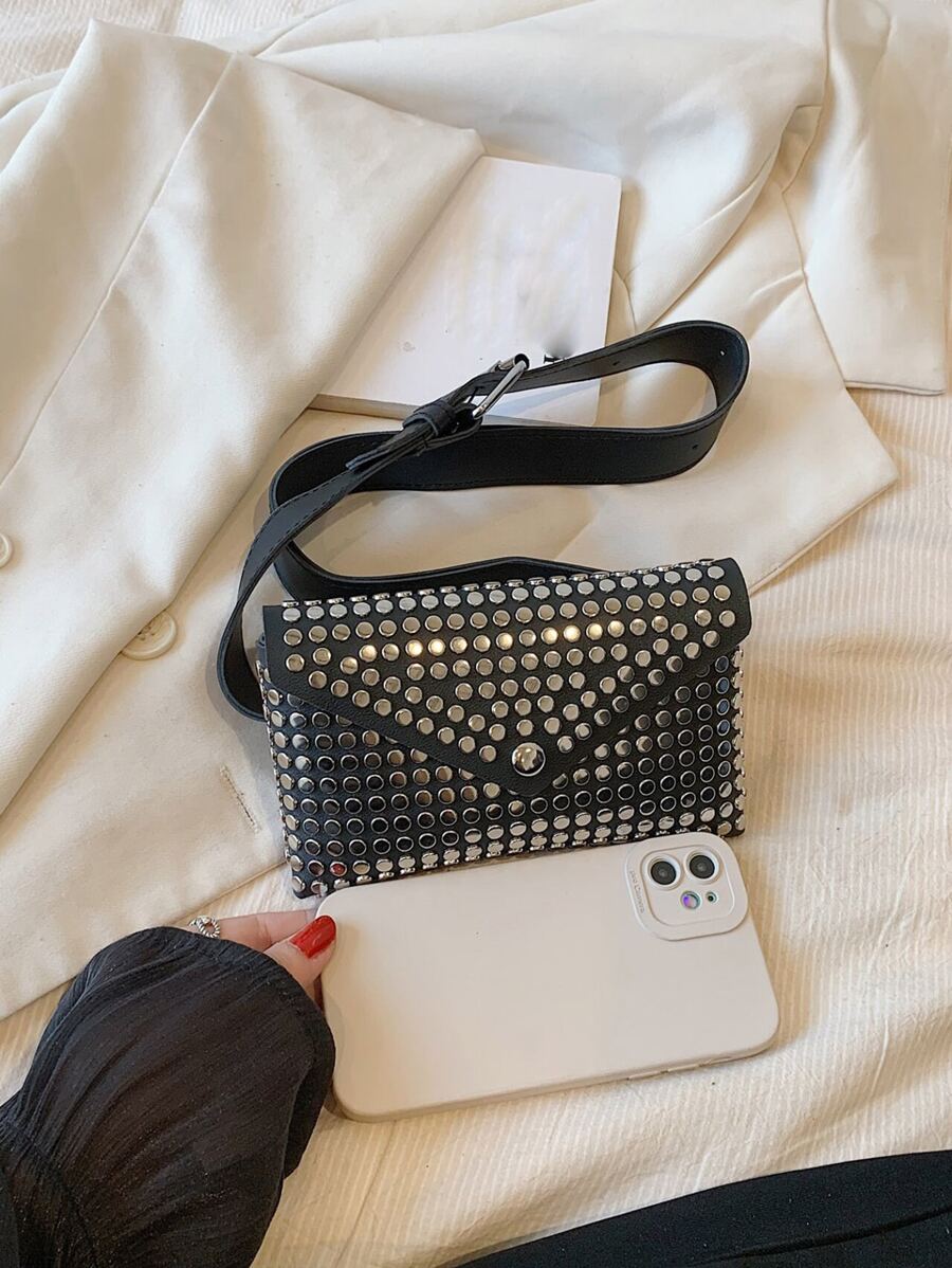 1pc Polka Dot Rivet PU Leather Belt Cellphone Waist Bag For Women, New Fashion Crossbody Chest Bag With Detachable Belt
