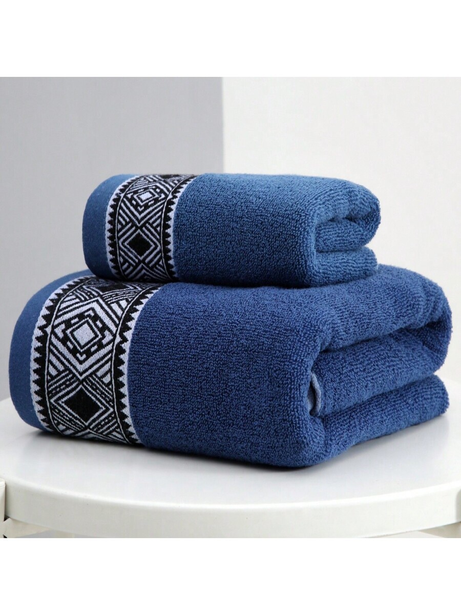 1pc Towel/Bath Towel & 2pcs Set (Bath Towel + Face Towel) Rhombic Pattern Thick Absorbent Wash Cloth
