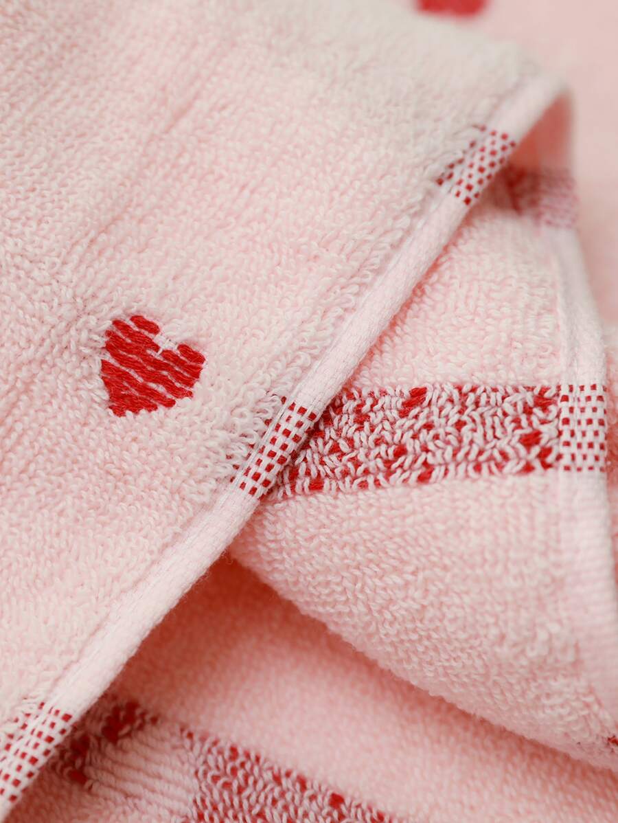 1pc Woven Fabric Face Towel, Heart Embroidered Facial Cleaning Cloth For Bathroom