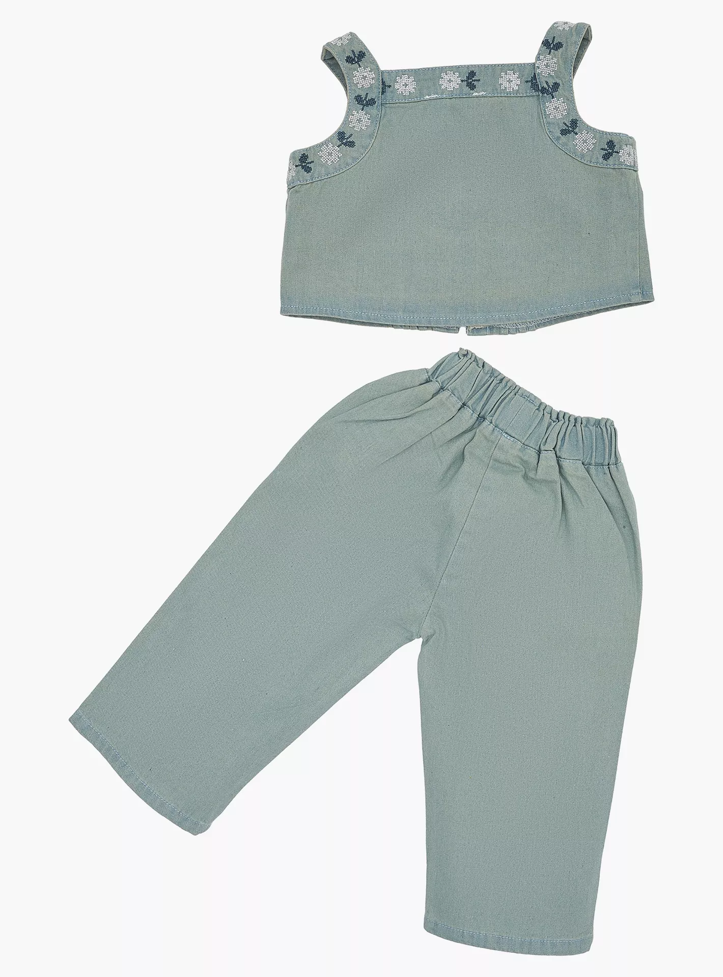 • Complete Set: Includes a sleeveless floral printed top and matching pants for a ready-to-wear look.