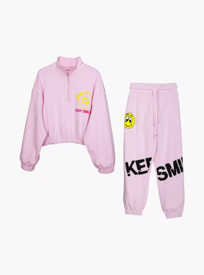 2-Piece Set – Includes a printed long sleeves sweatshirt and matching joggers.