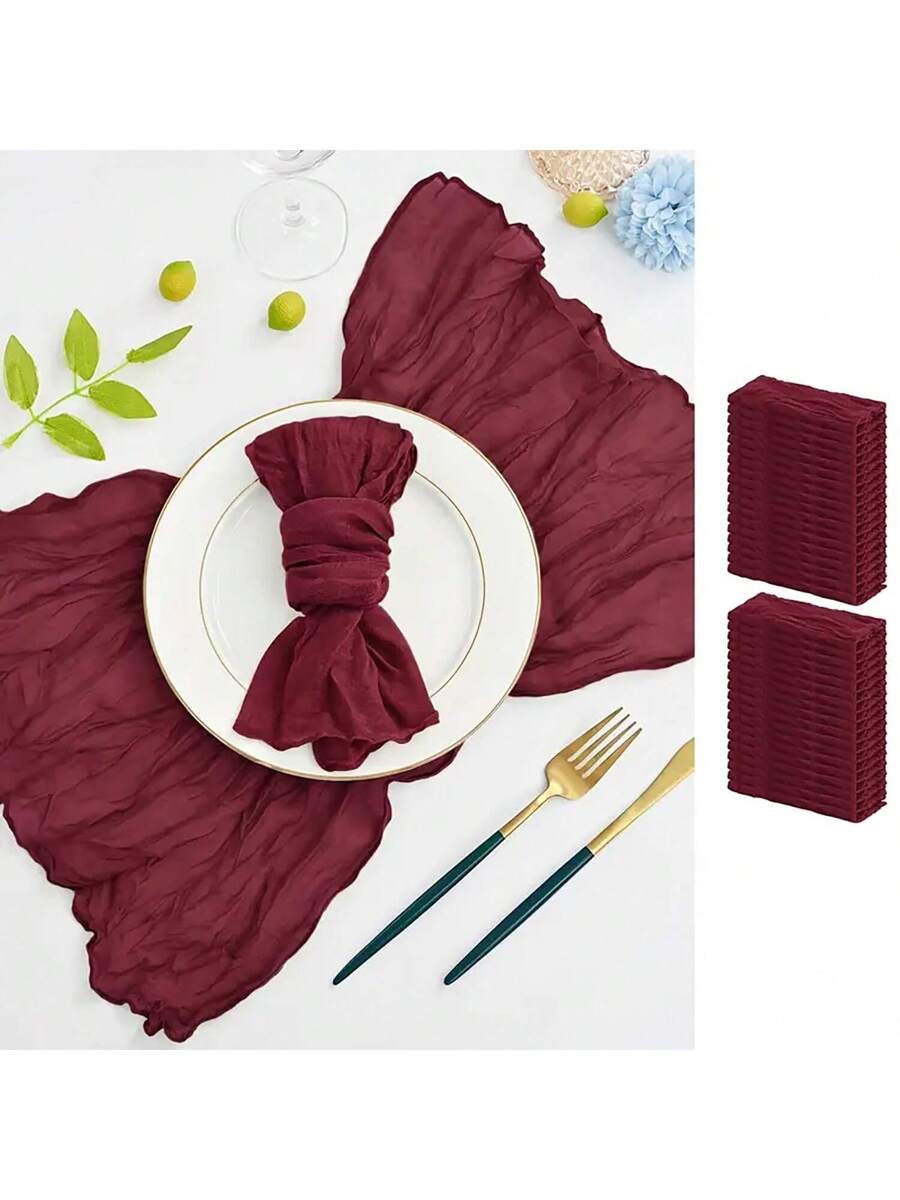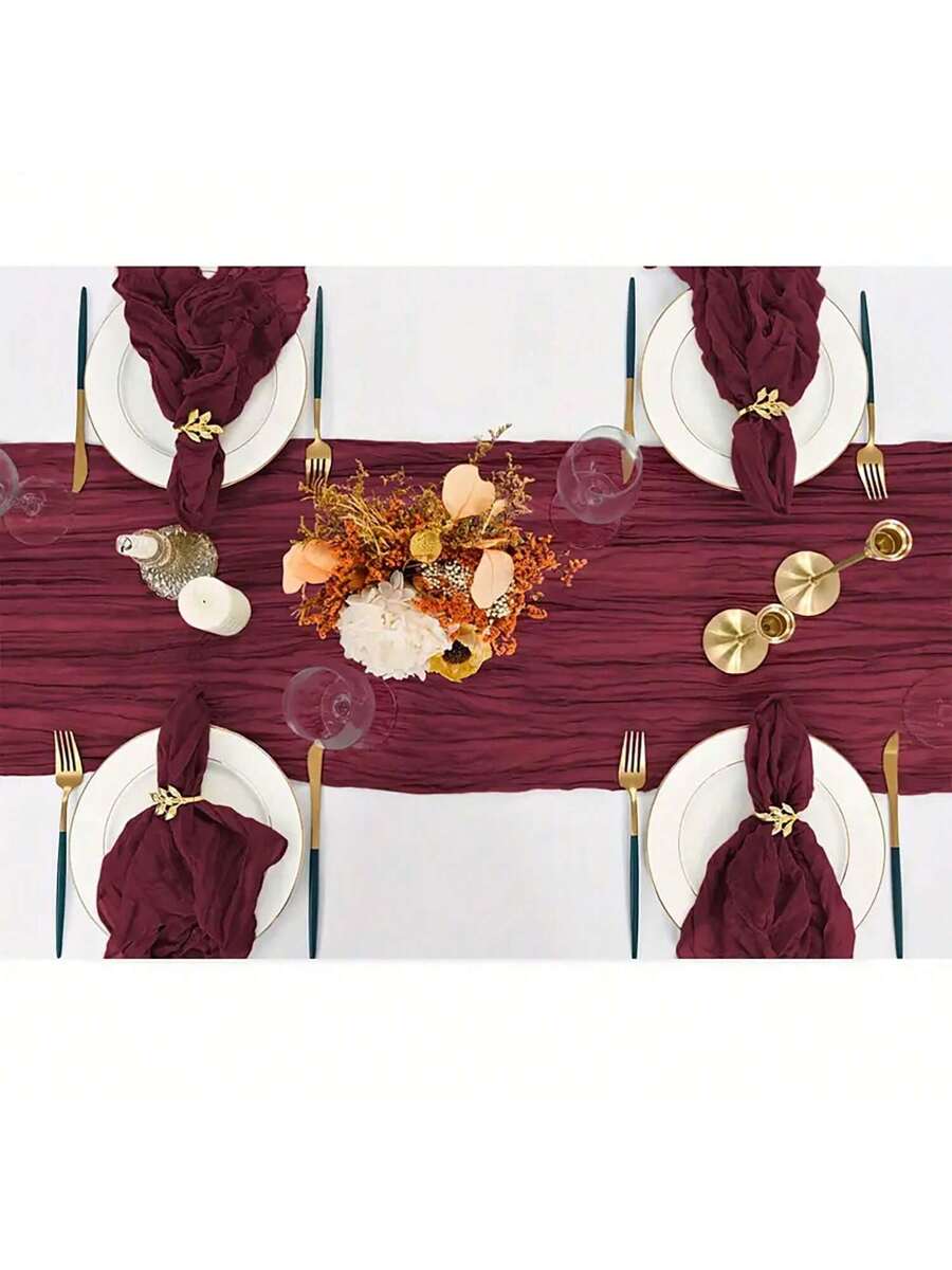 Home / Home Textile / Home Textile / Home Textiles / 2pcs Burgundy Bohemian Burlap Table Runner And 12pcs Matching Napkin Set, Suitable For Wedding, Party, Daily Use, Valentine’s Day, New Year Country Decor