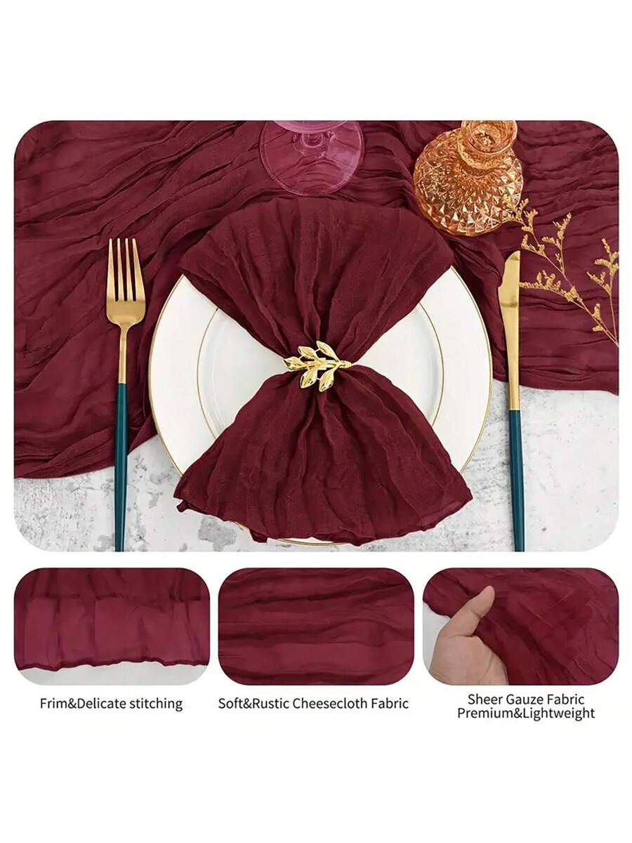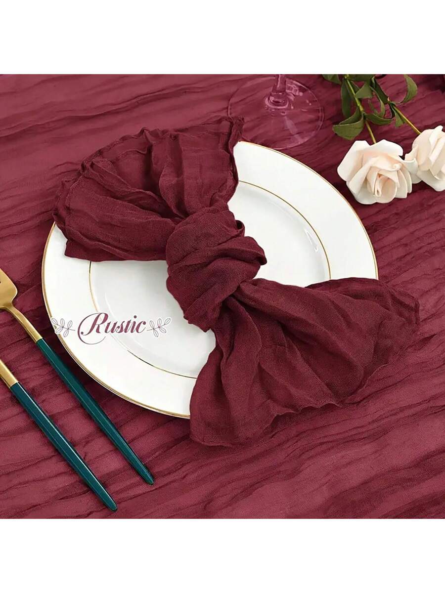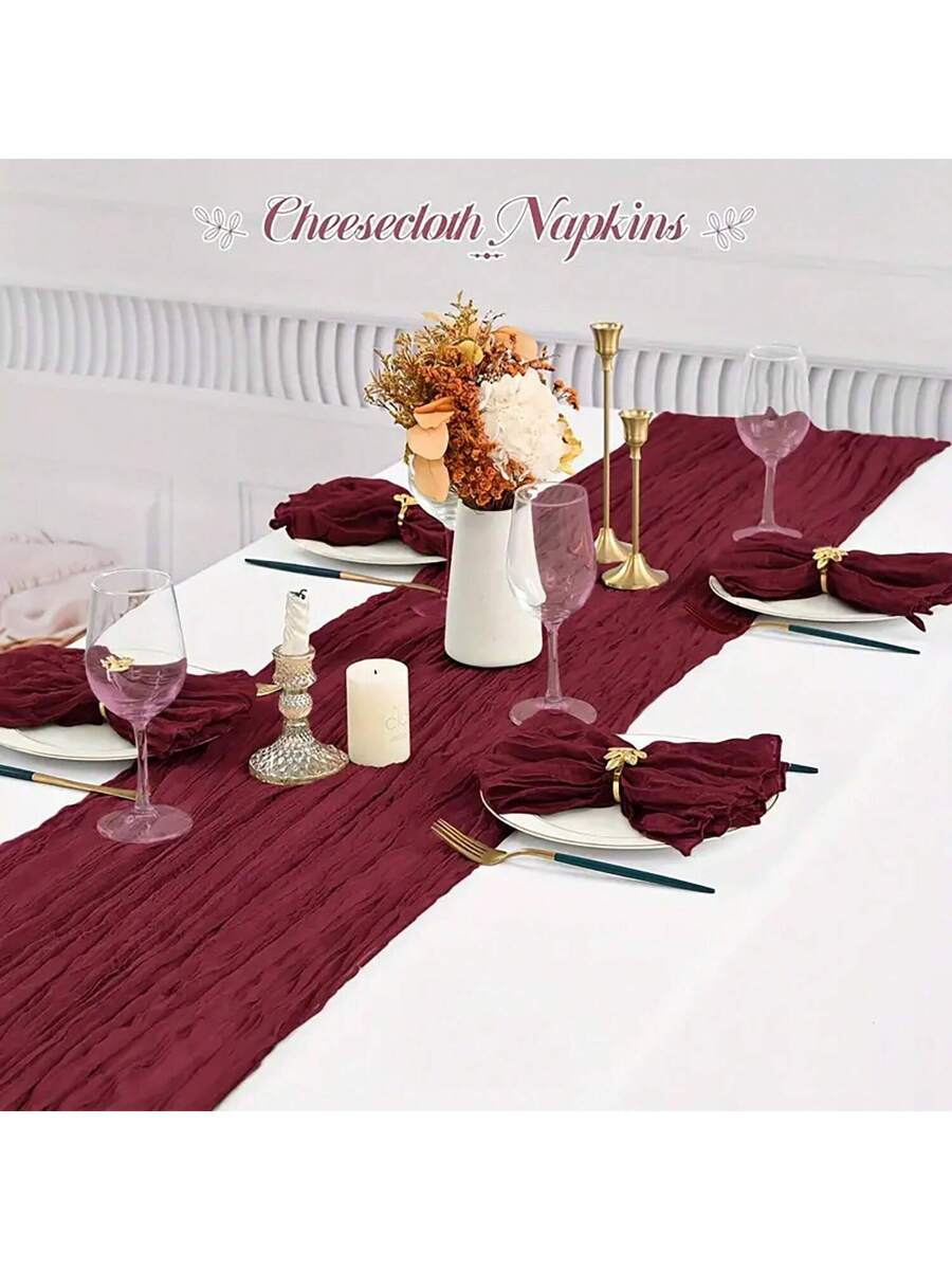 2pcs Burgundy Bohemian Burlap Table Runner And 12pcs Matching Napkin Set, Suitable For Wedding, Party, Daily Use, Valentine’s Day, New Year Country Decor