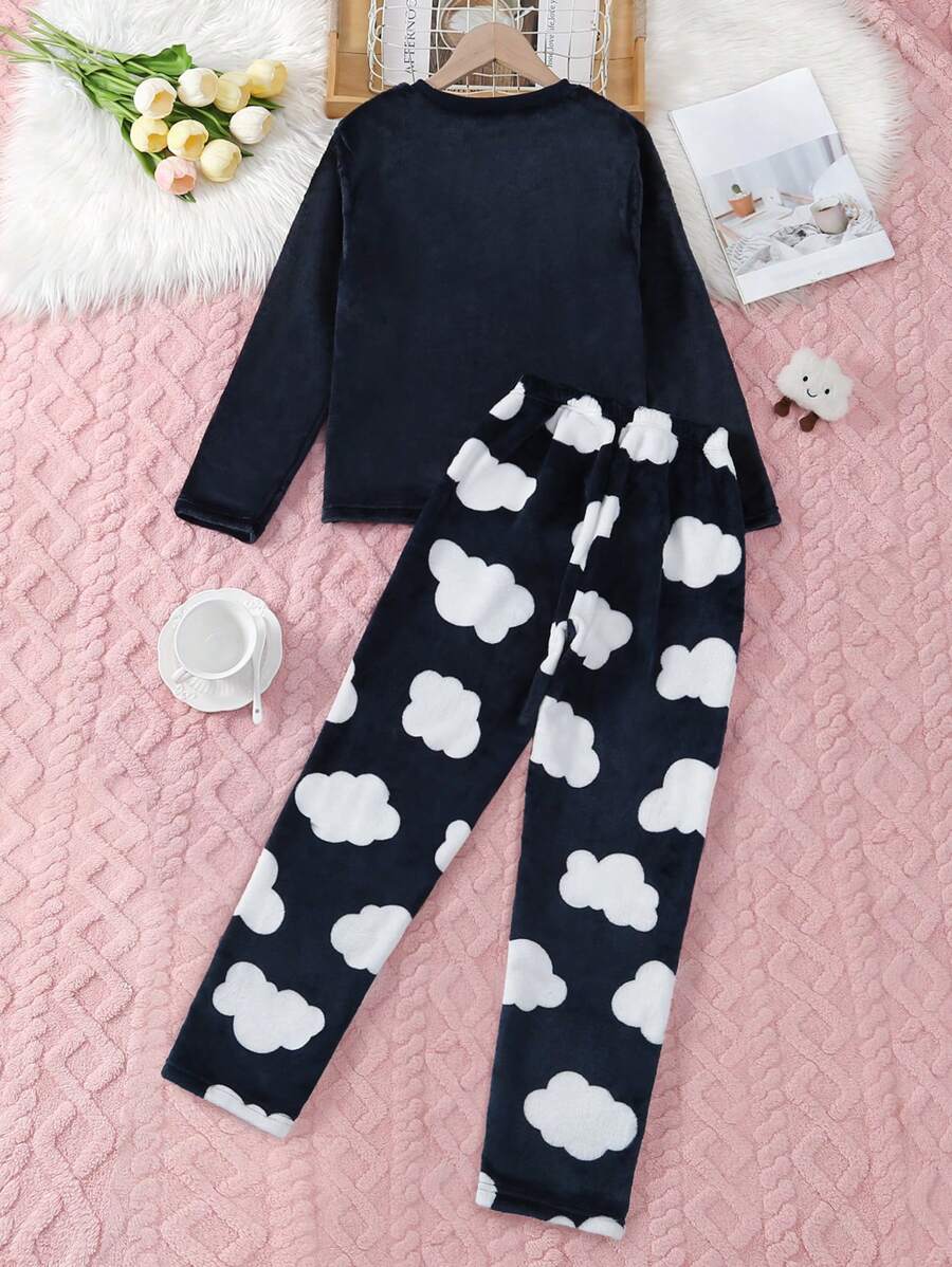 2pcs Pre-Tween Girls Long Sleeve Top And Pants Loungewear Set