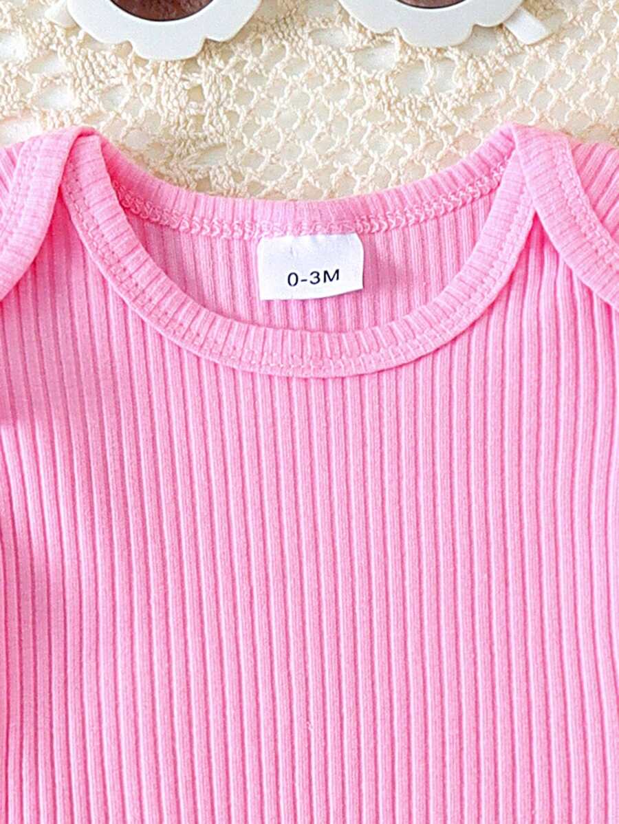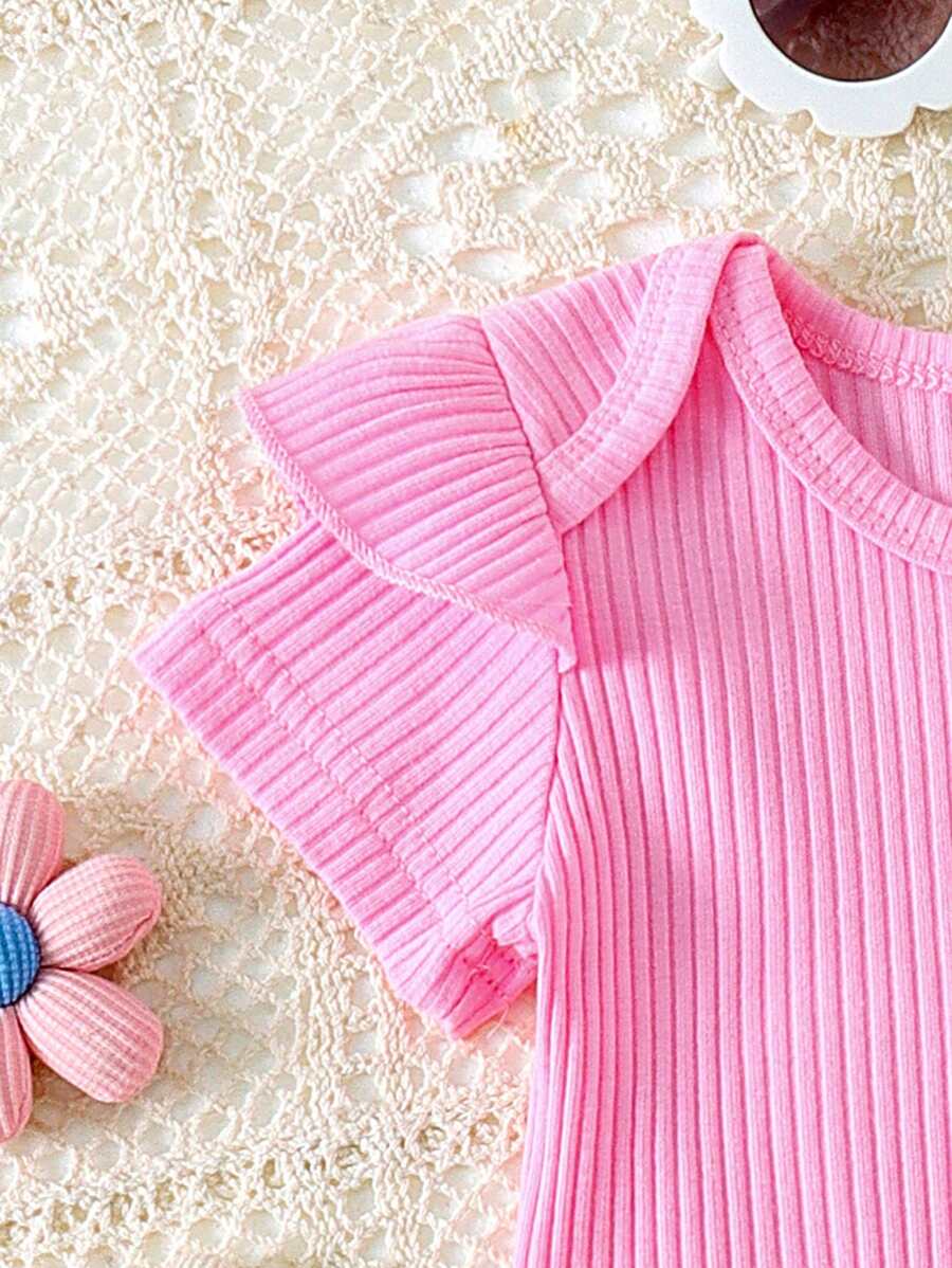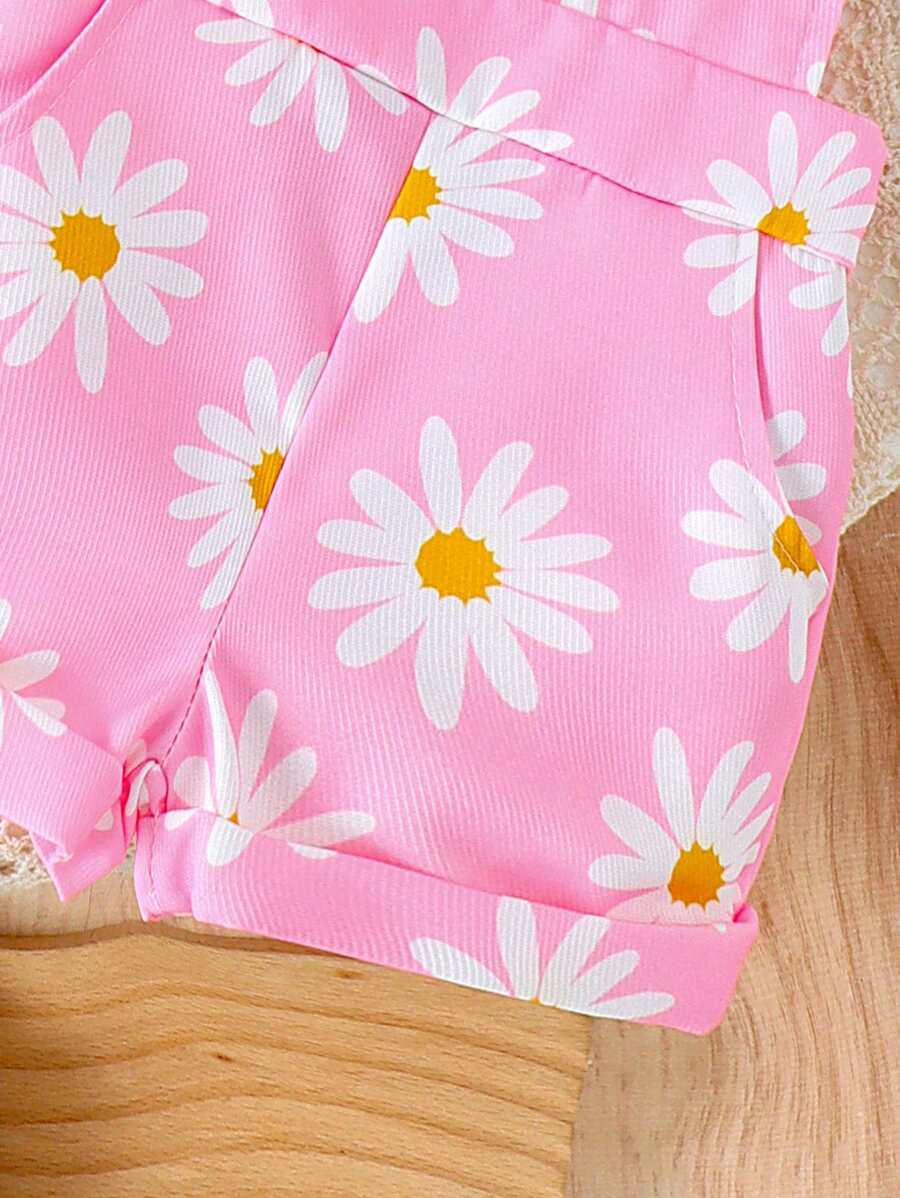 2pcs/Set Baby Girls Cute Short Sleeve Romper + Suspender Pants Set, Summer