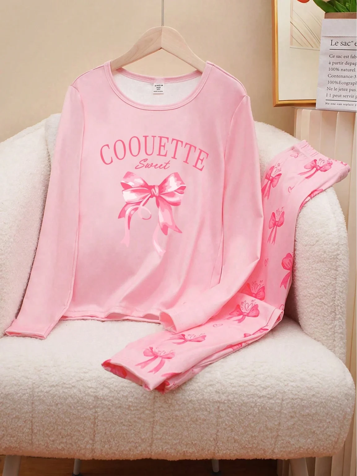 2pcs/Set Girl's Casual Long Sleeve Top And Pants Set, Featuring Bowknot Print, Comfortable And Stylish quantity