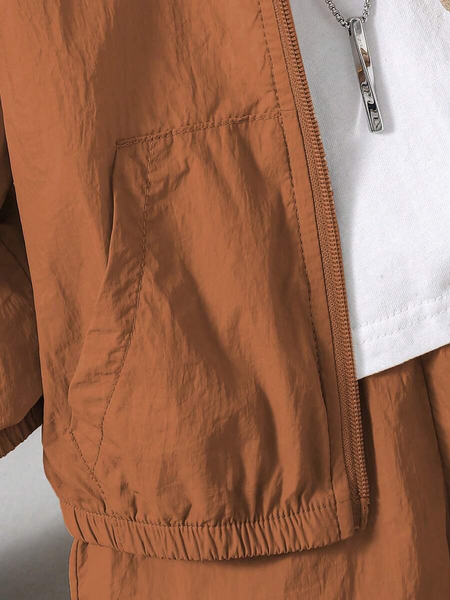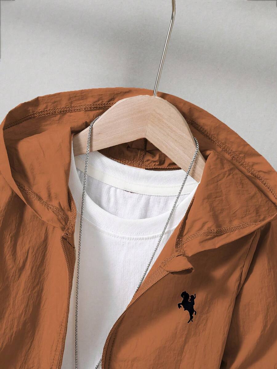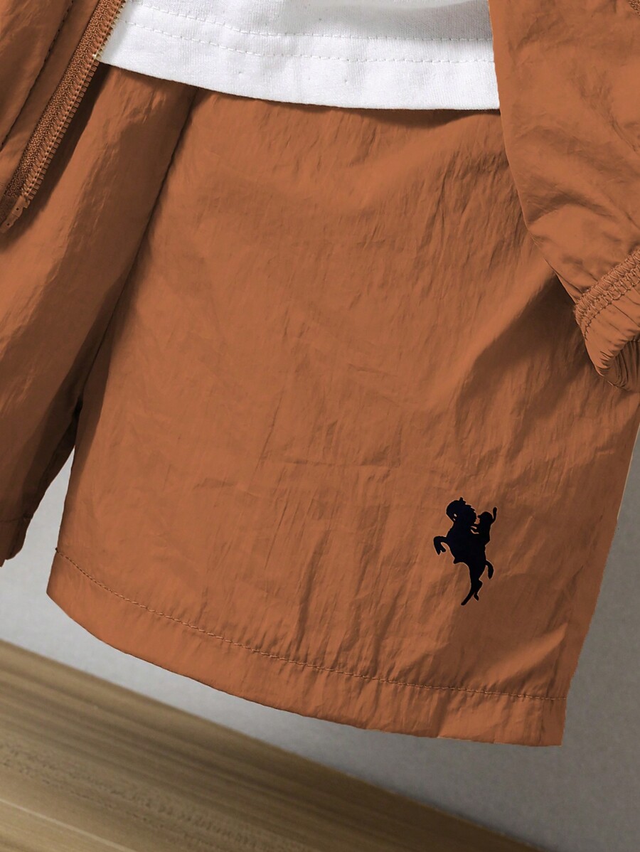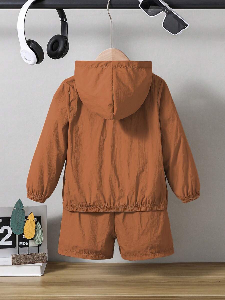/ 2pcs/Set Young Boys Casual Minimalist Hooded Jacket And Shorts Set, Suitable For School, Sports, Spring, Summer, Autumn