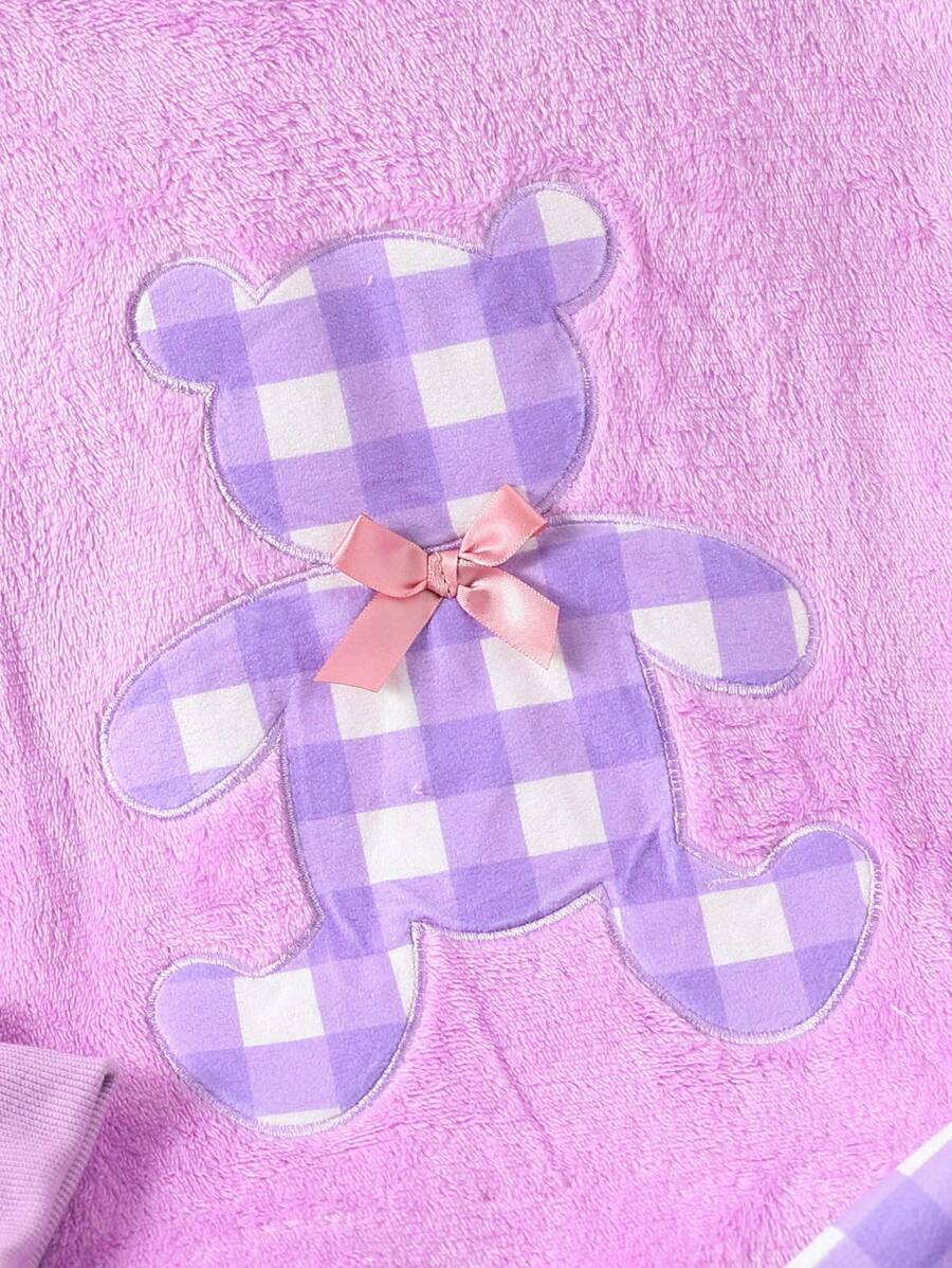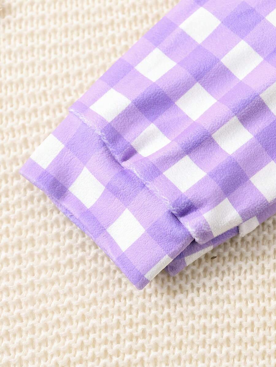 2pcs Tween Girls Casual Comfy Outfit Set, Pink Plaid Sweatshirt With Bear Embroidery & Matching Plaid Pants, Suitable For Autumn/Winter quantity