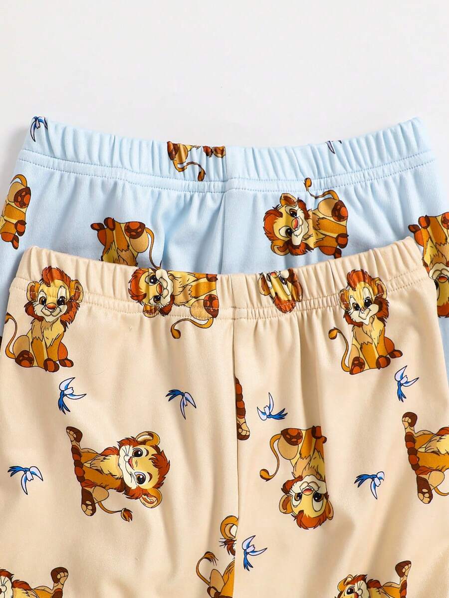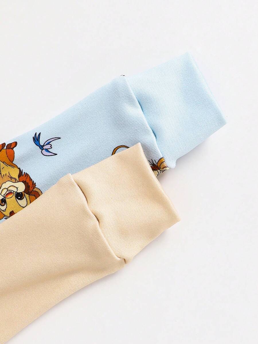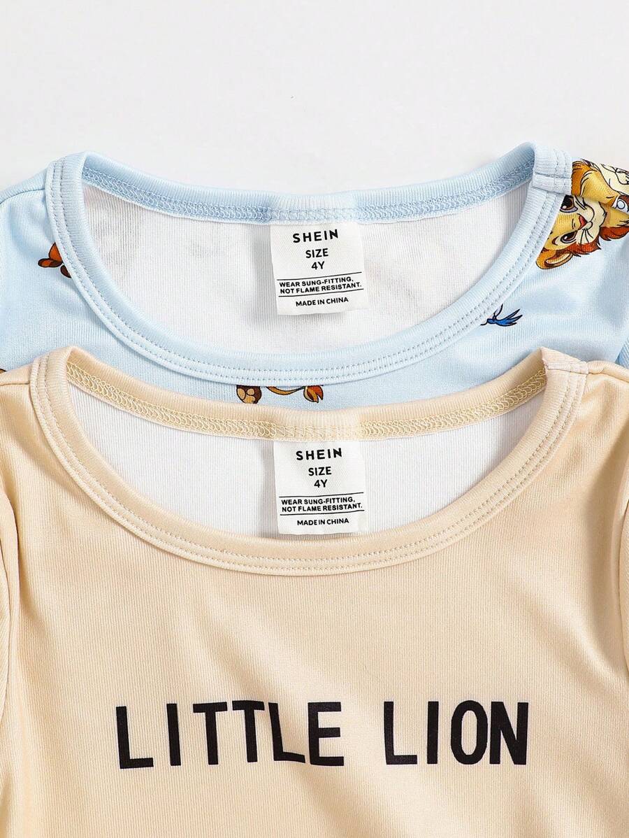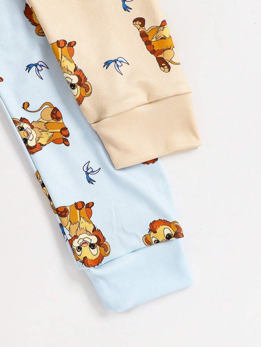 / 2pcs Young Boy Monkey Print Snug Fit Long Sleeve Top And Long Pants Sleepwear Set