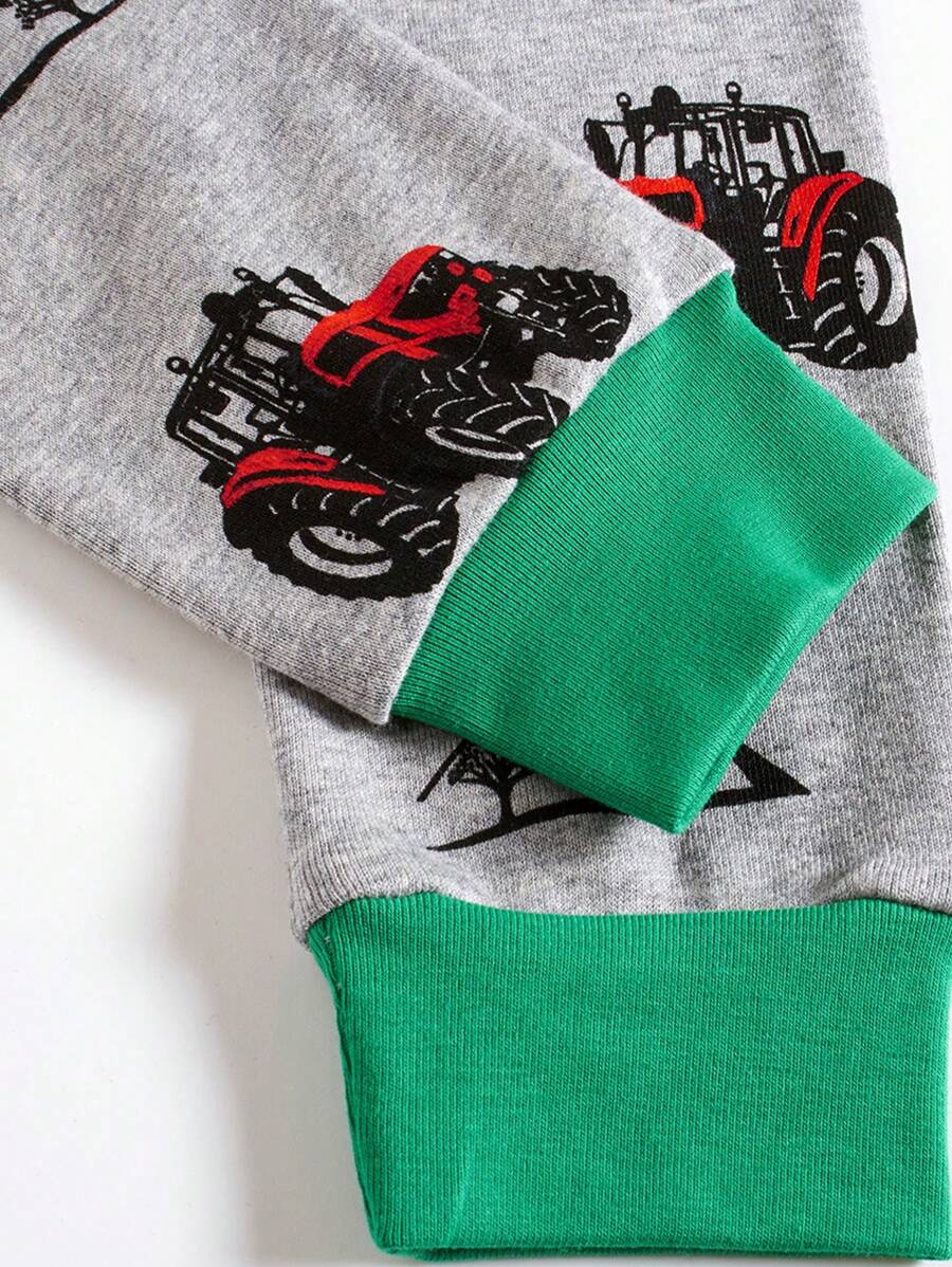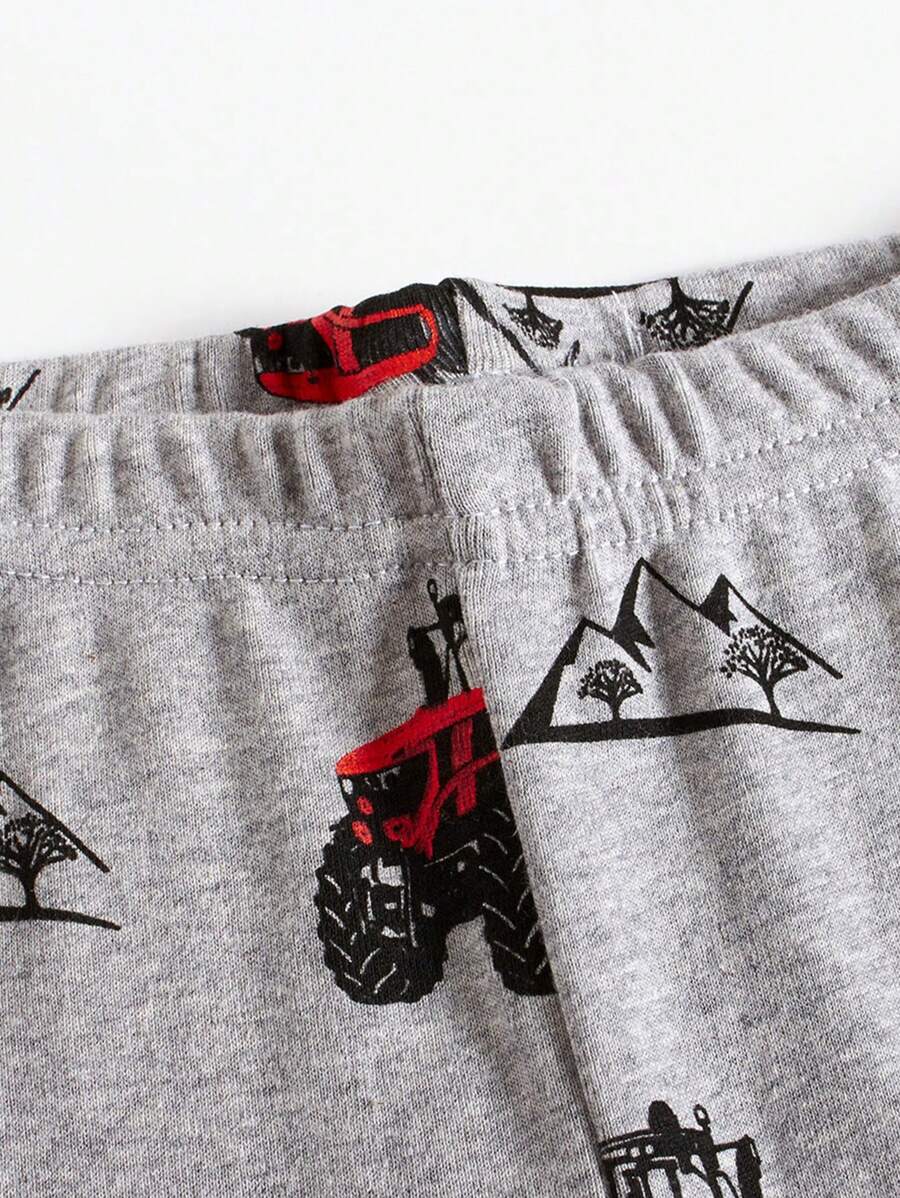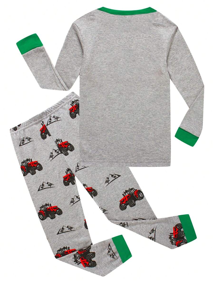 2pcs Young Boys Pajama Set, Grey Tractor Print Home Sleepwear
