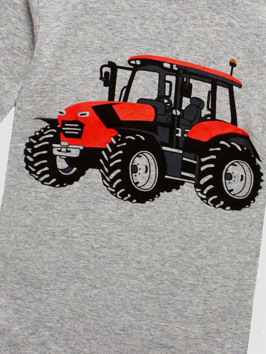 2pcs Young Boys Pajama Set, Grey Tractor Print Home Sleepwear quantity