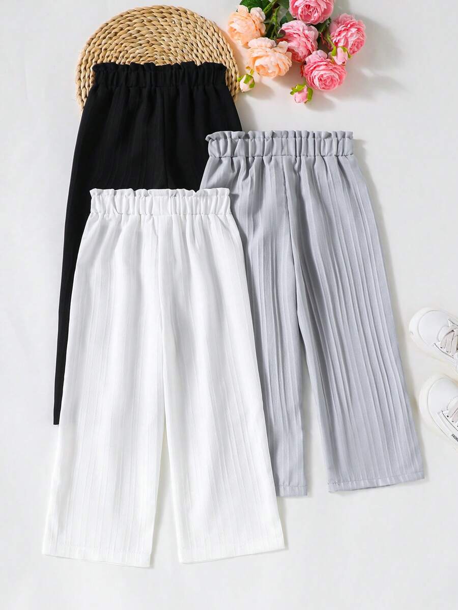 / 3 Pcs Girls Wide Leg Casual Pants, Comfortable, Suitable For Spring & Autumn