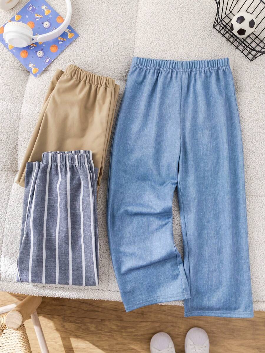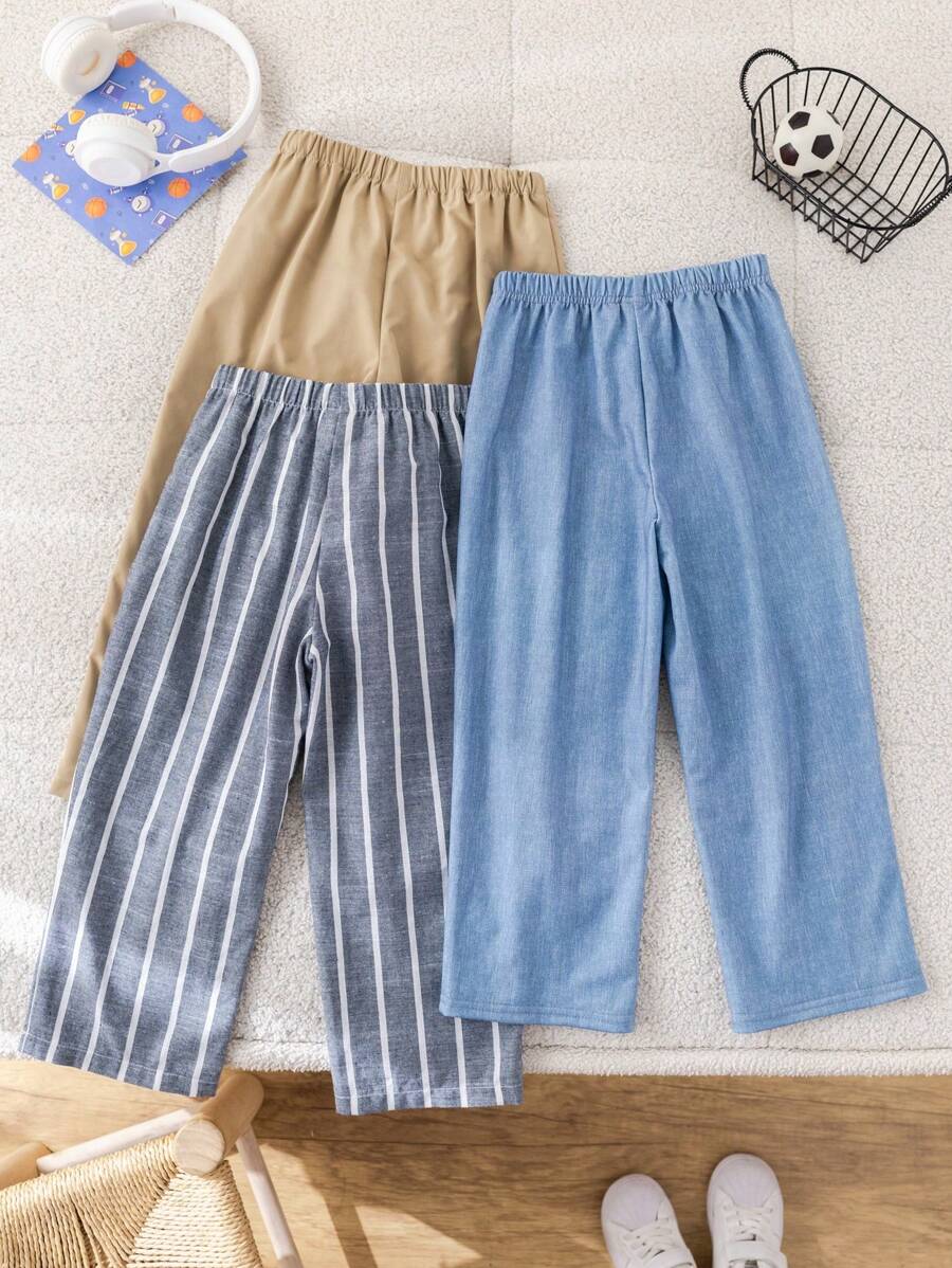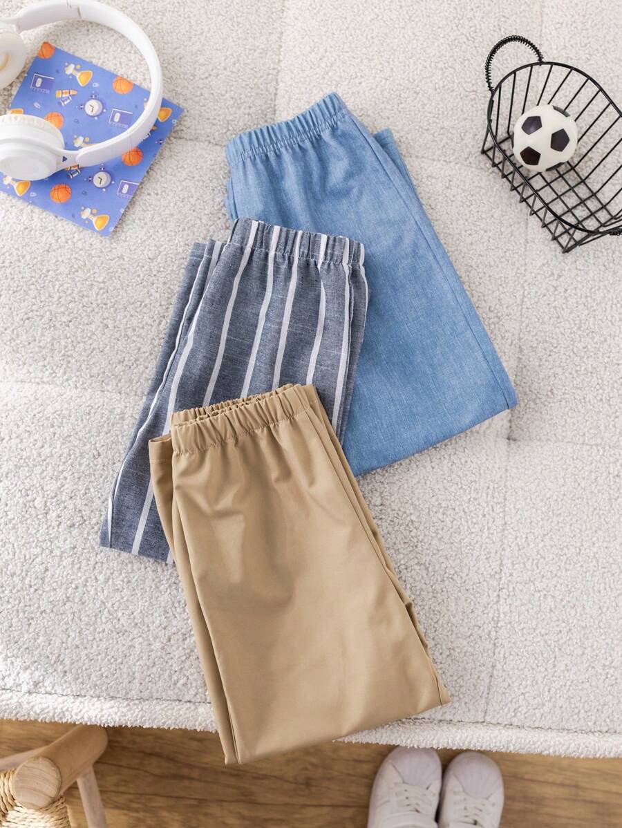 / 3-Piece Set Of Young Boys Casual Sports Academy Retro Striped Long Pants And Basic Long Pants