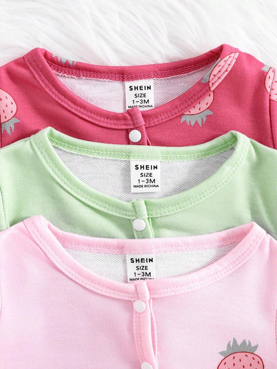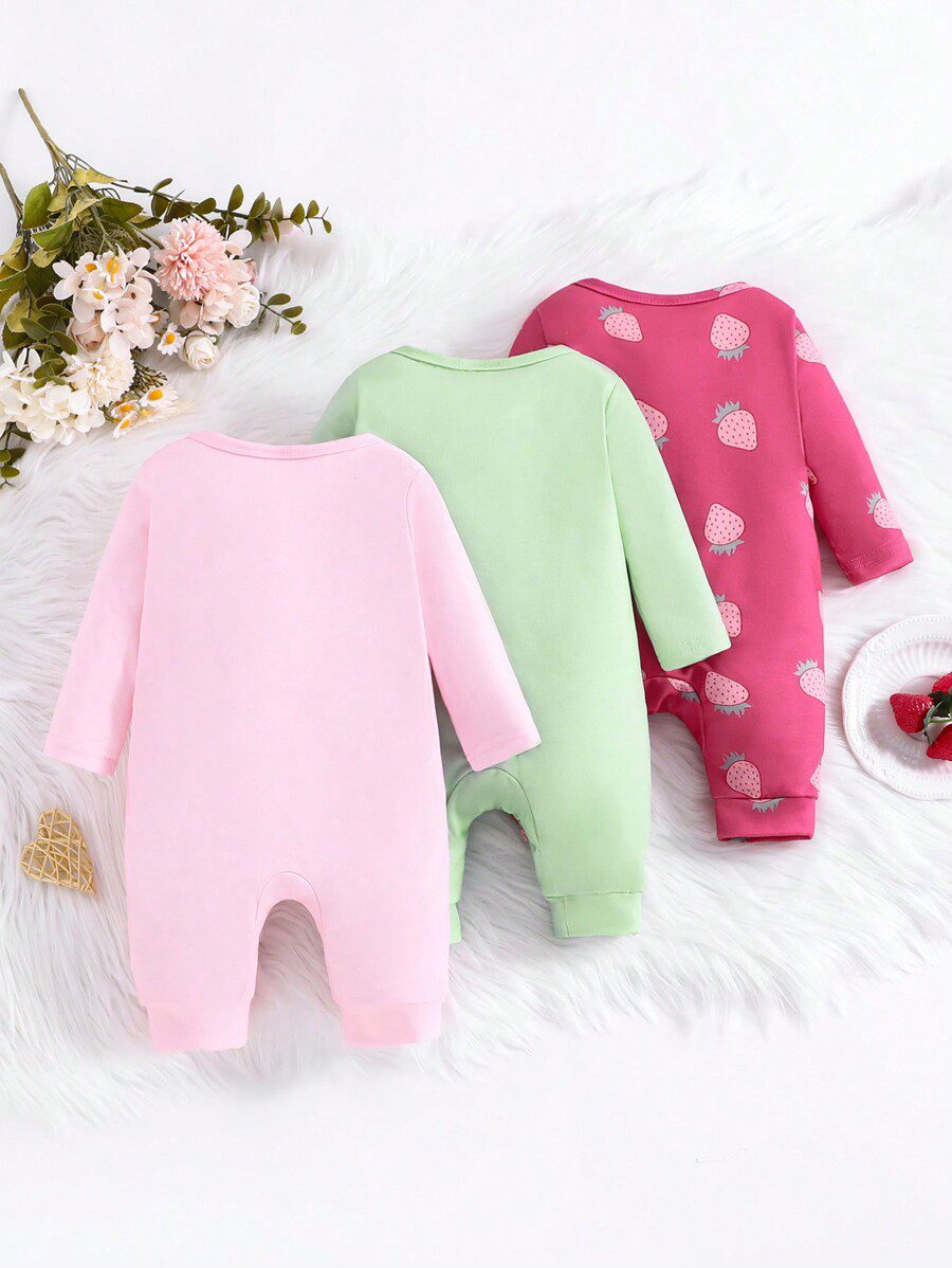 / 3pcs Baby Girls’ Comfortable Cute Pink Strawberry Pattern Romper Set