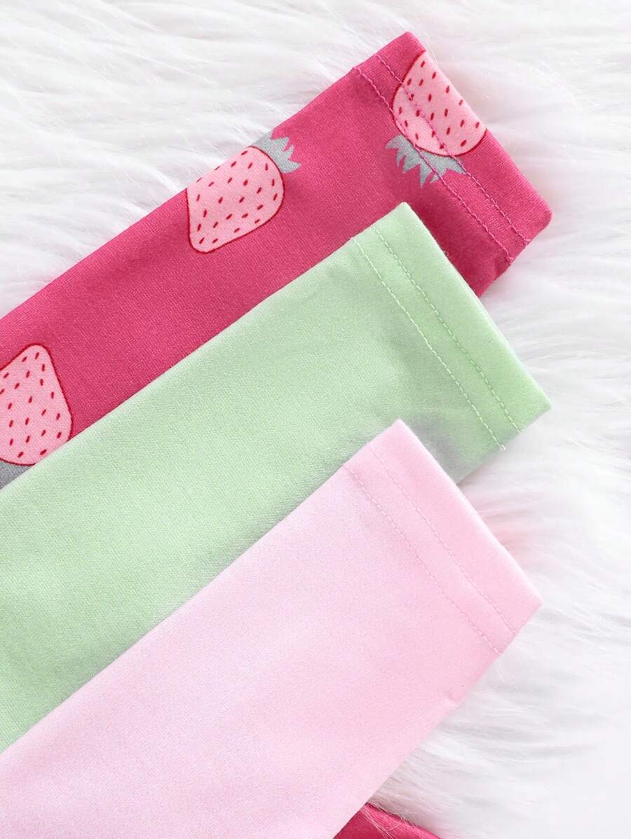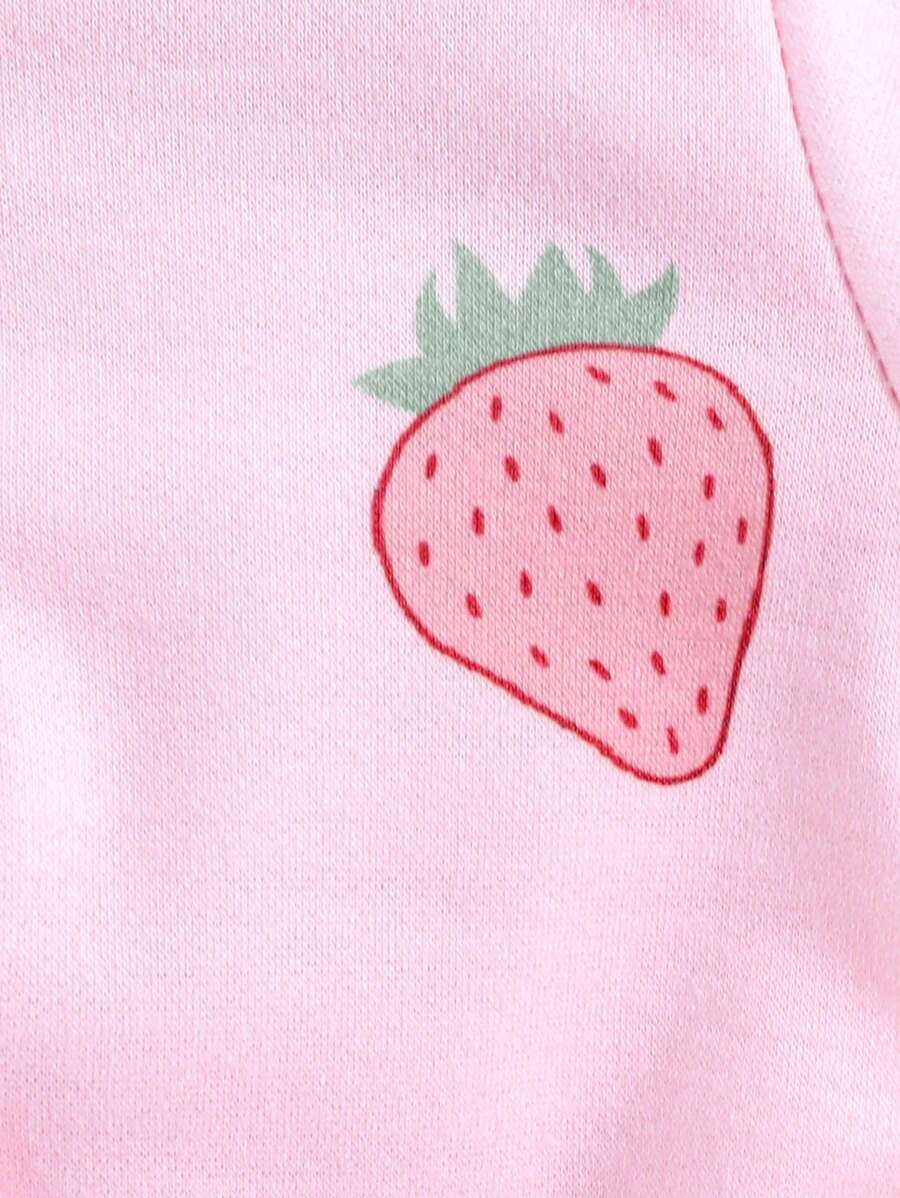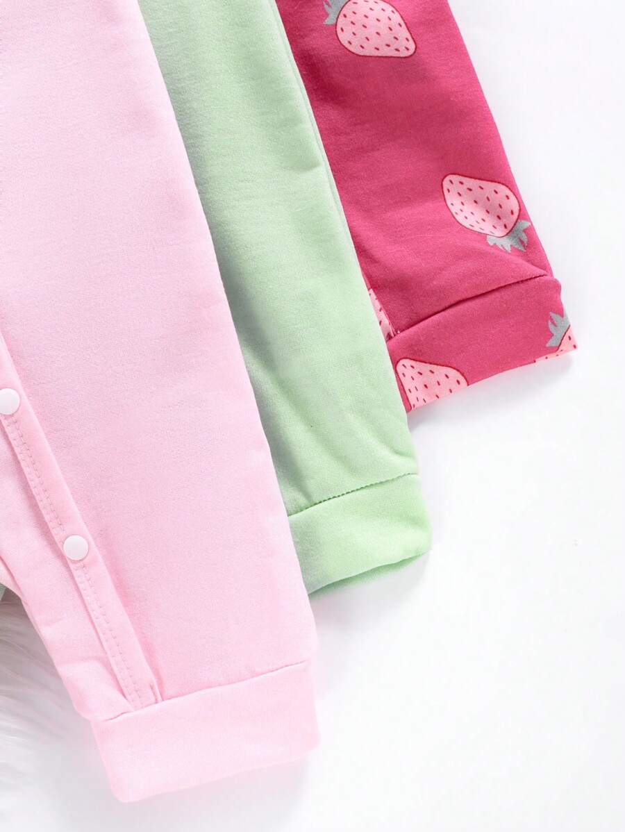 3pcs Baby Girls’ Comfortable Cute Pink Strawberry Pattern Romper Set