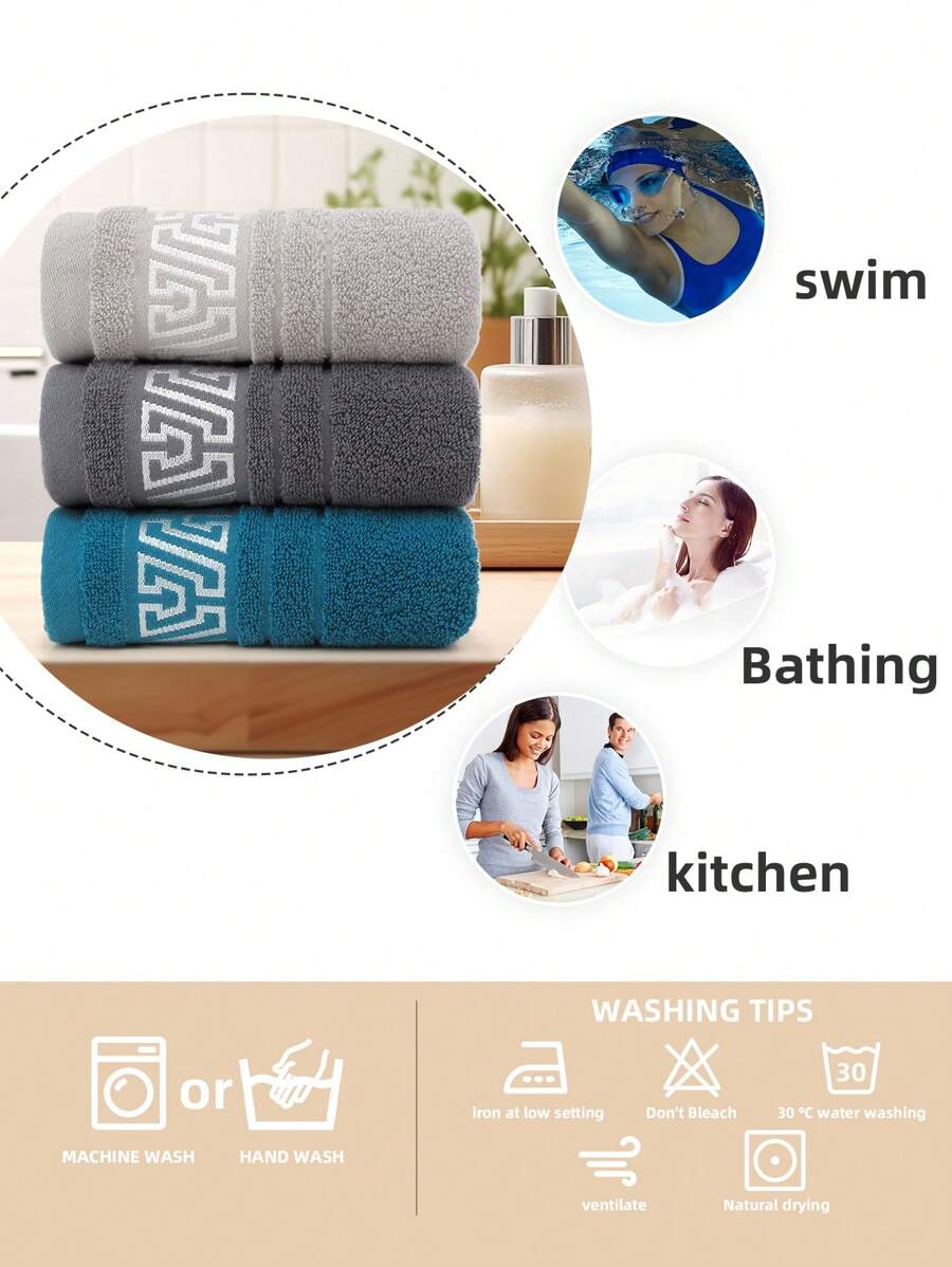 3PCS Bath Towel Set, 70x140cm (27.56×55.12inch) Thick, Fluffy, Soft, Absorbent, Quick-Drying, No Shedding, No Fading, Good For Bathing And Drying, Adult Men And Women Daily Home Use Bath Towel