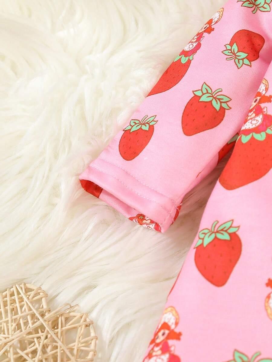 • Design: Adorable pink fabric with playful strawberry print, perfect for everyday wear or special outings.