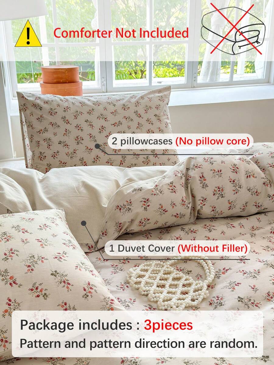 3pcs Ditsy Floral Bedding Set, Fresh And Comfortable Duvet Cover For Girls, All Season