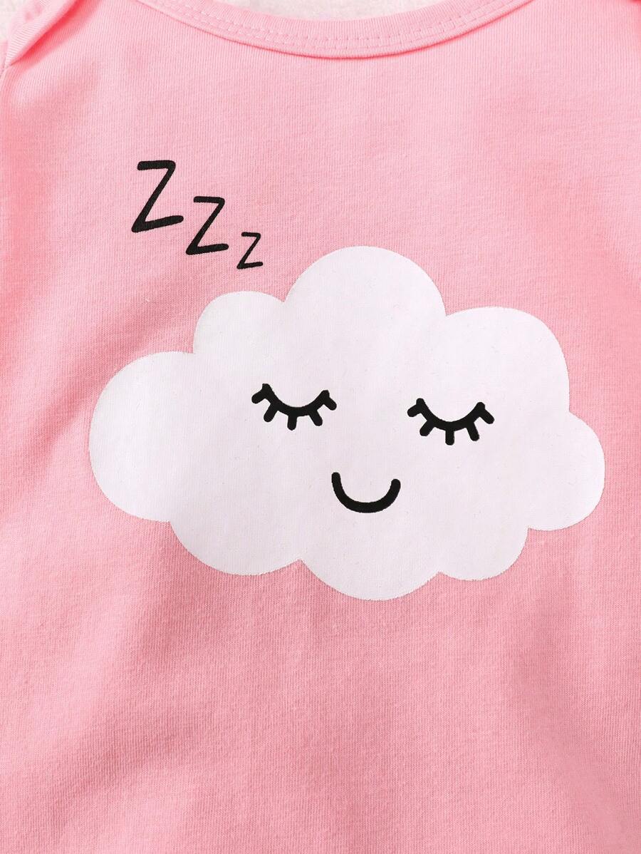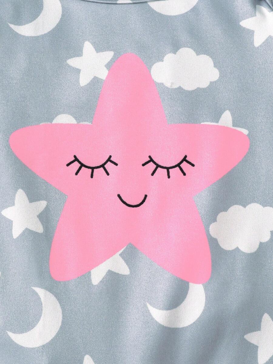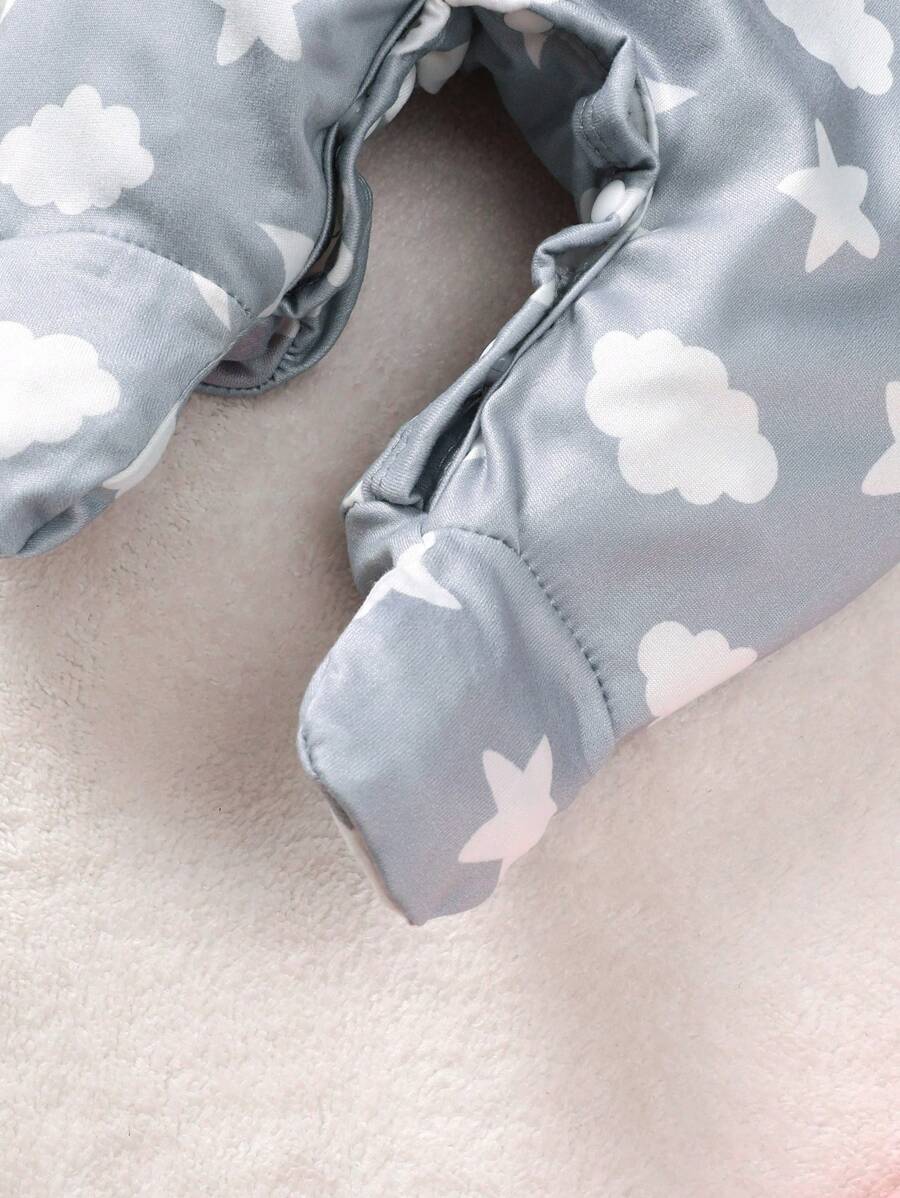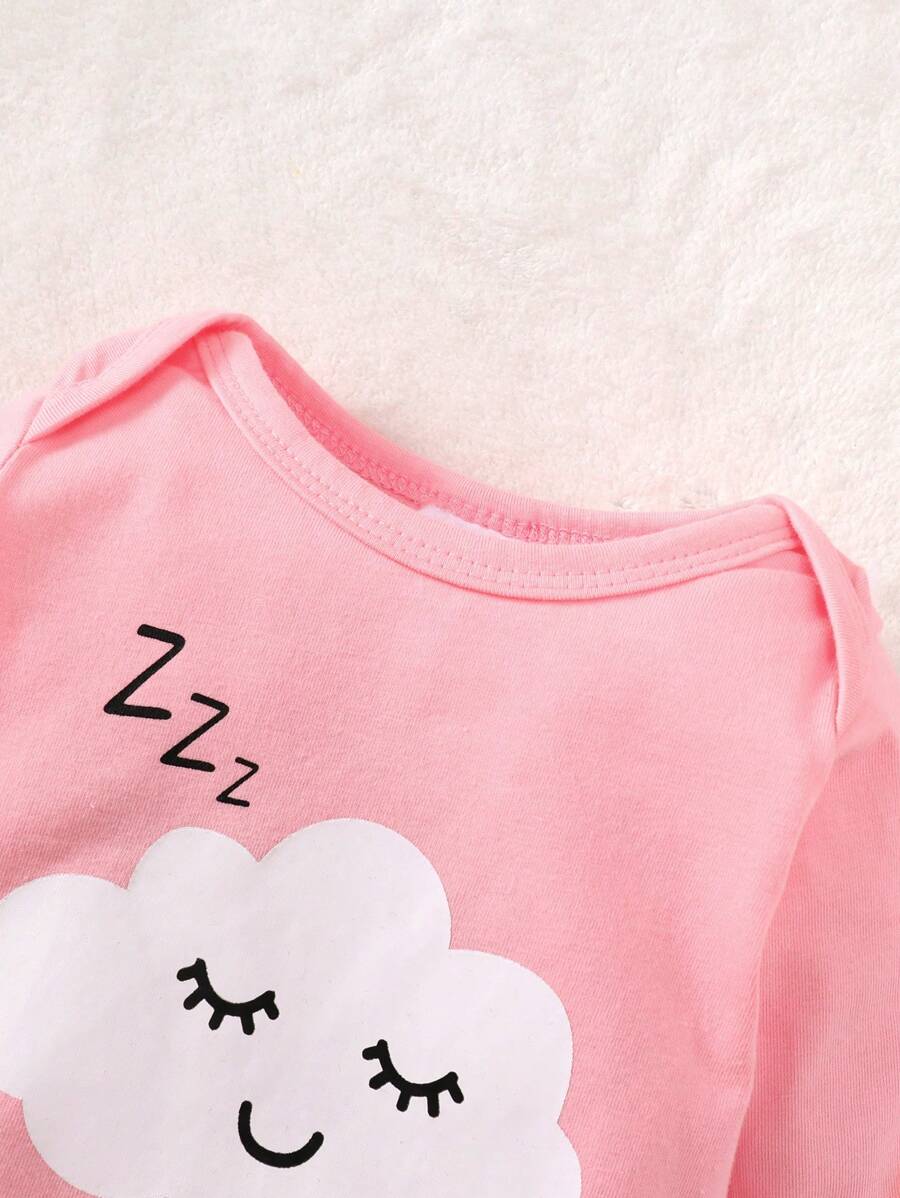 3pcs Newborn Baby Girls’ Casual Crew Neck Long Sleeve Star, Moon And Cloud Print Romper Set