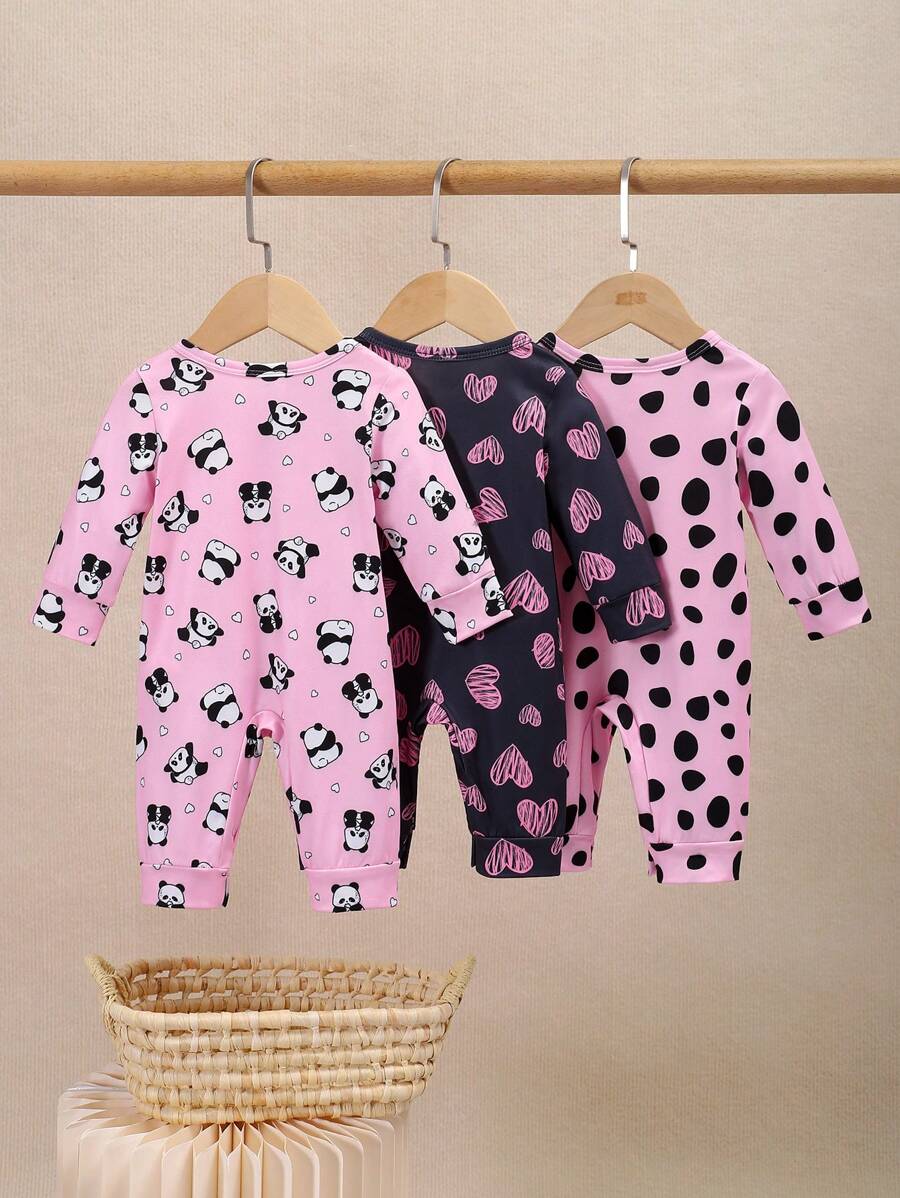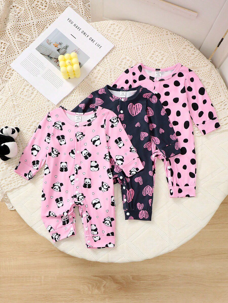 / 3pcs Set Baby Girls’ Cute Animal Print Long Sleeve Romper