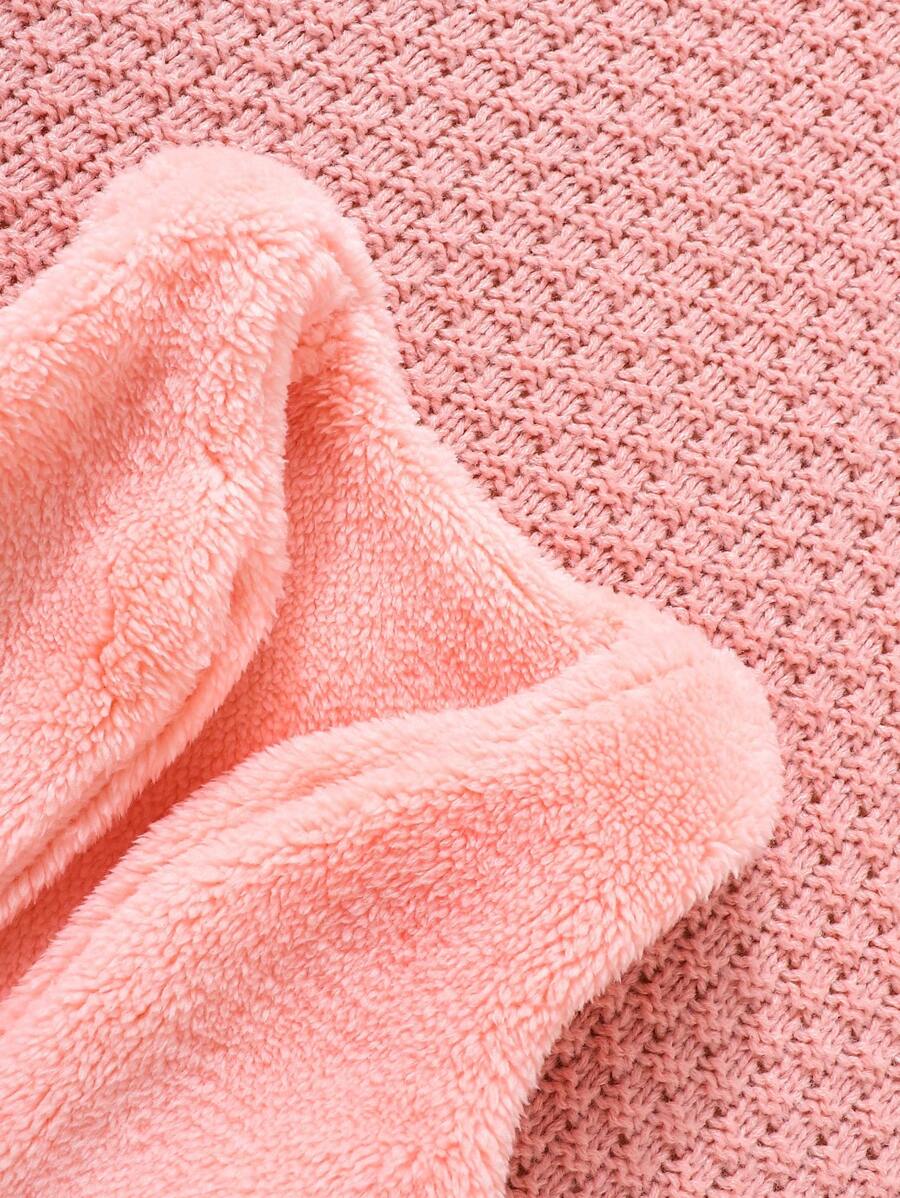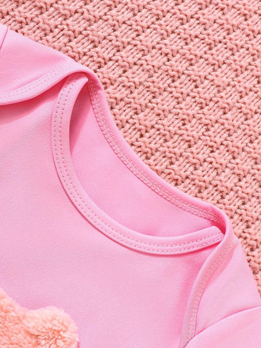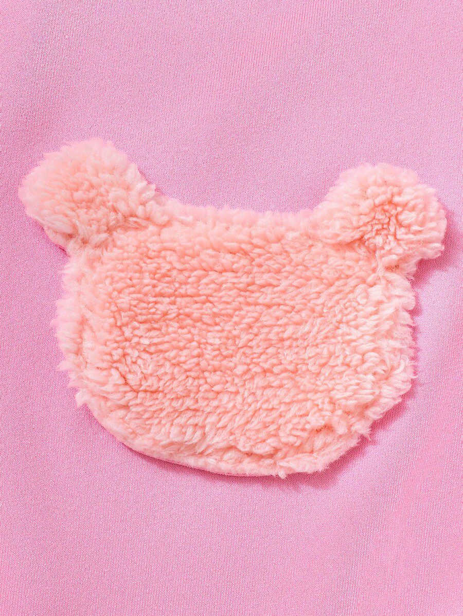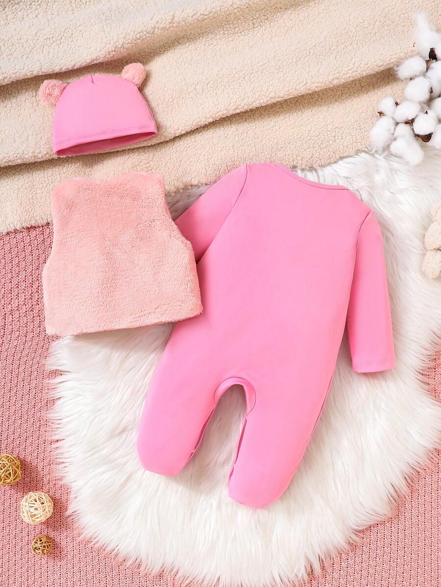 3pcs Set Baby Girls Pink Cute Bear Embroidery Fleece Vest Waistcoat & Hat And Long Sleeve Romper Pajamas Set