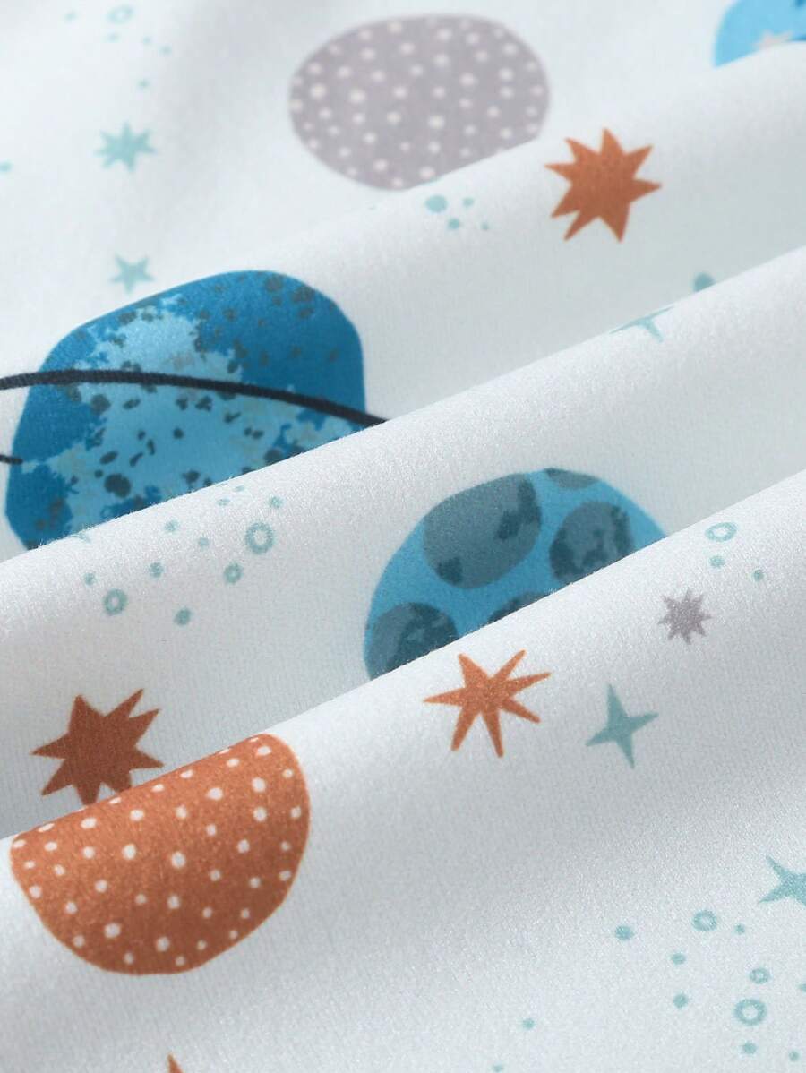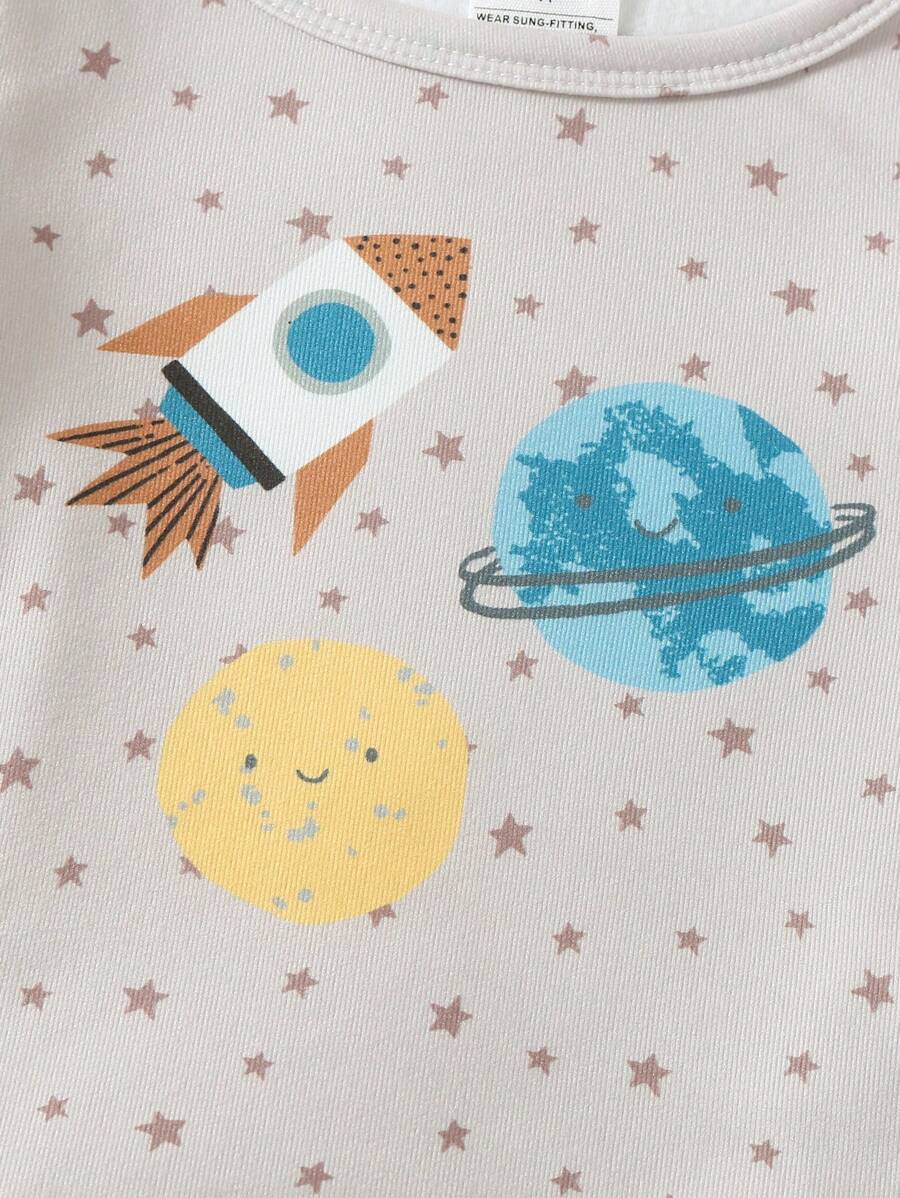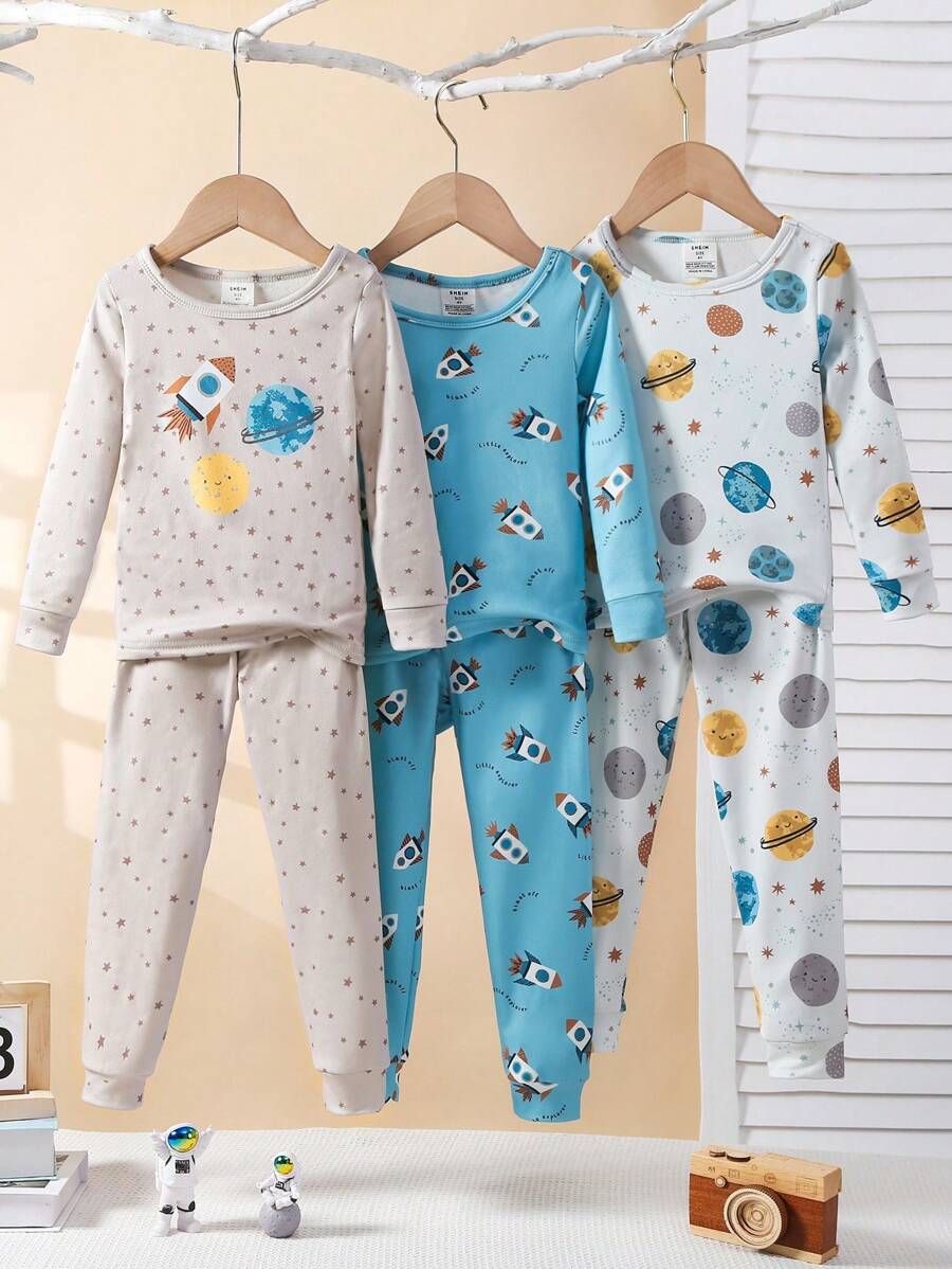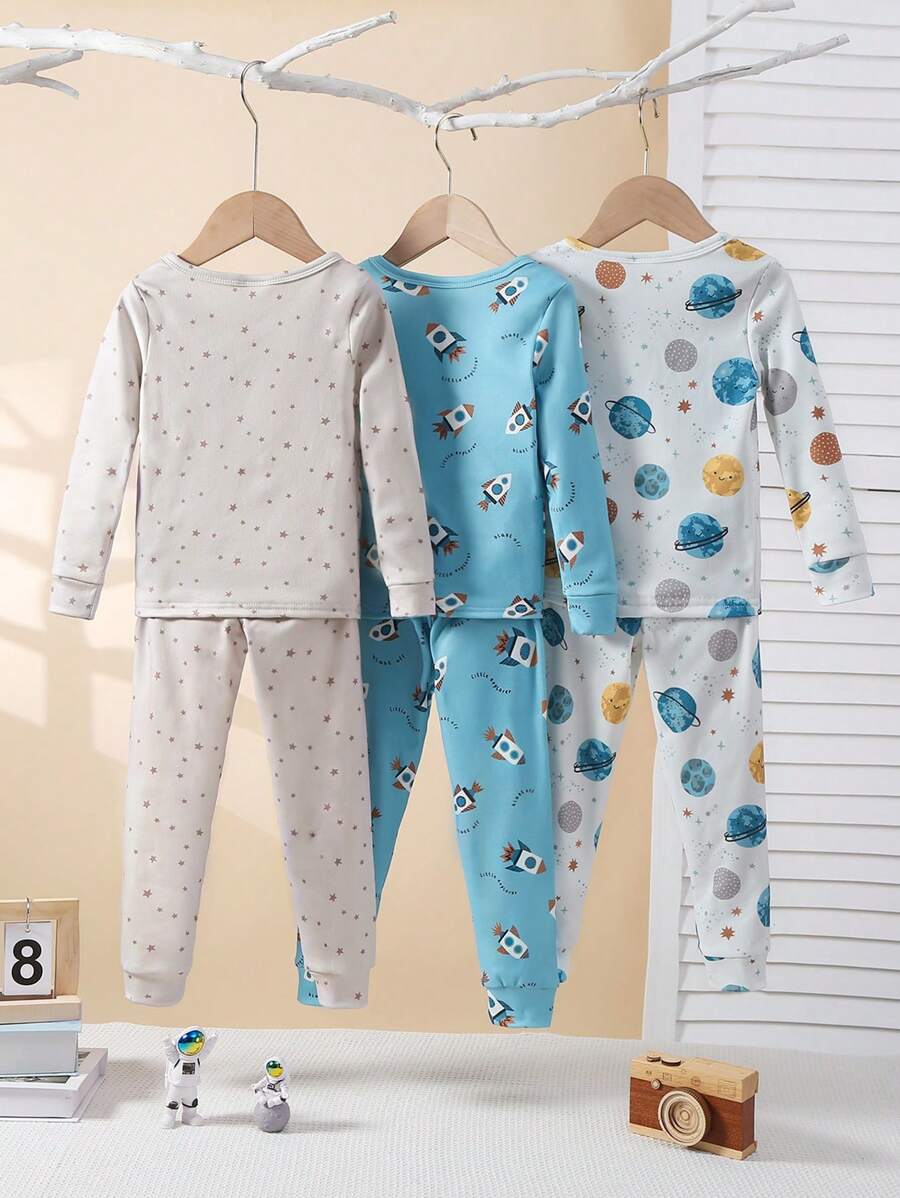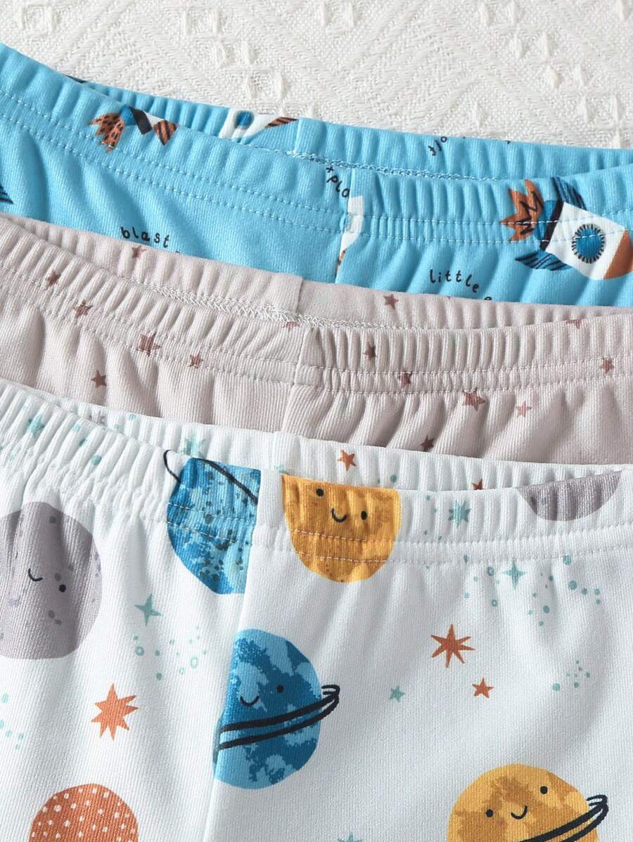 3pcs/Set Young Boy Casual Stylish Universe Planet Print Snug Fit Long Pants & Long Sleeve Top Loungewear Set