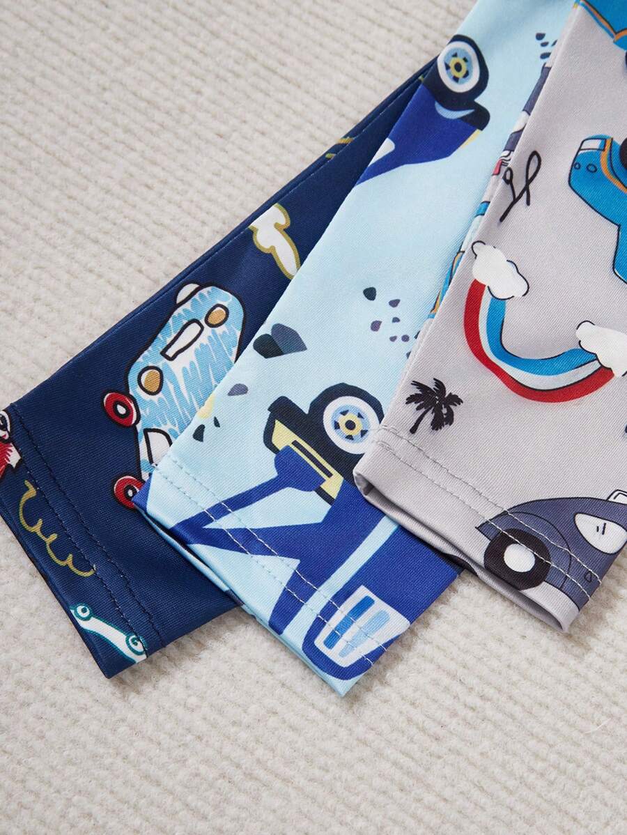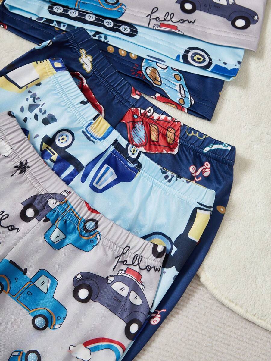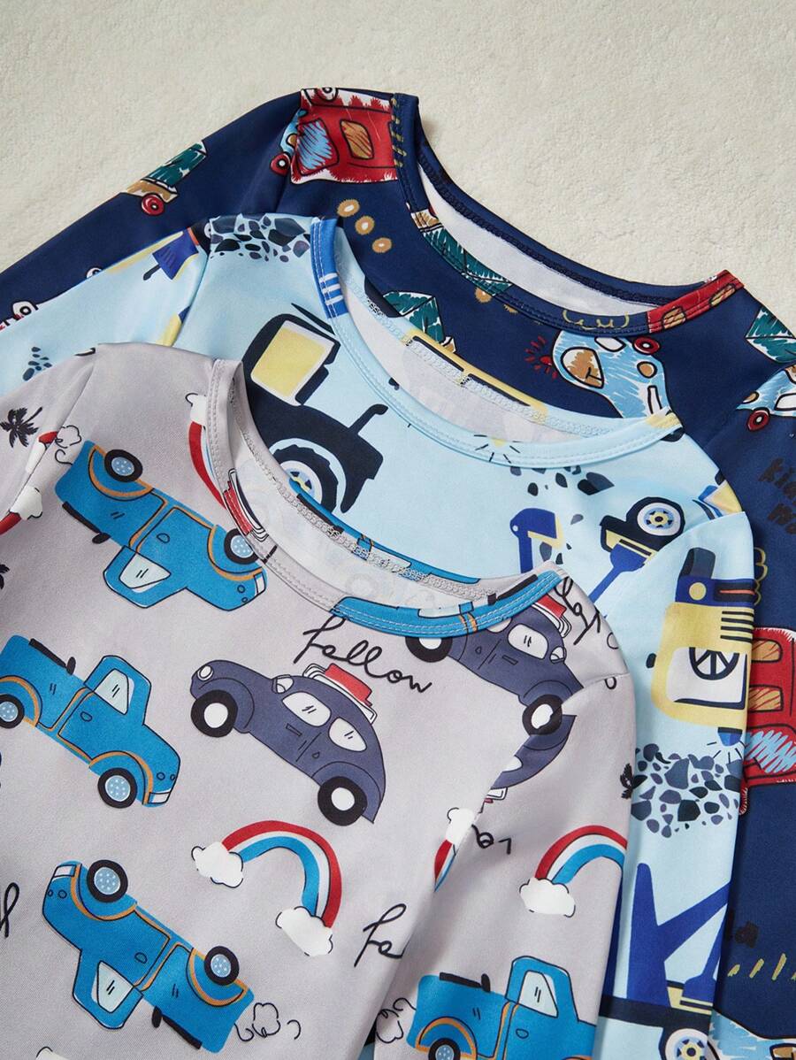 / 3pcs/Set Young Boy Vehicle Print Snug Fit Long Sleeve Pajama Sets