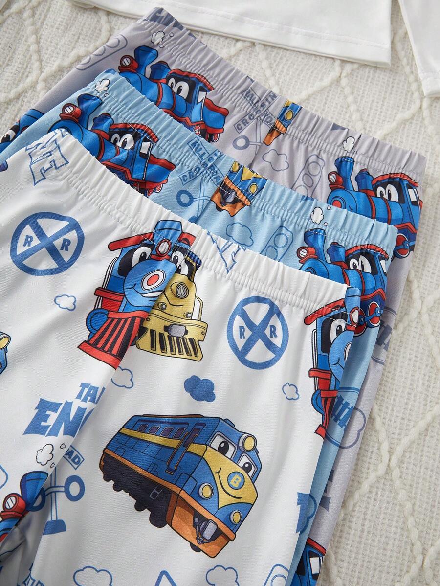 3pcs/Set Young Boys Car Allover Print Simple All Over Print Long Pants And Long Sleeve Snug Fit Pajama Sets quantity