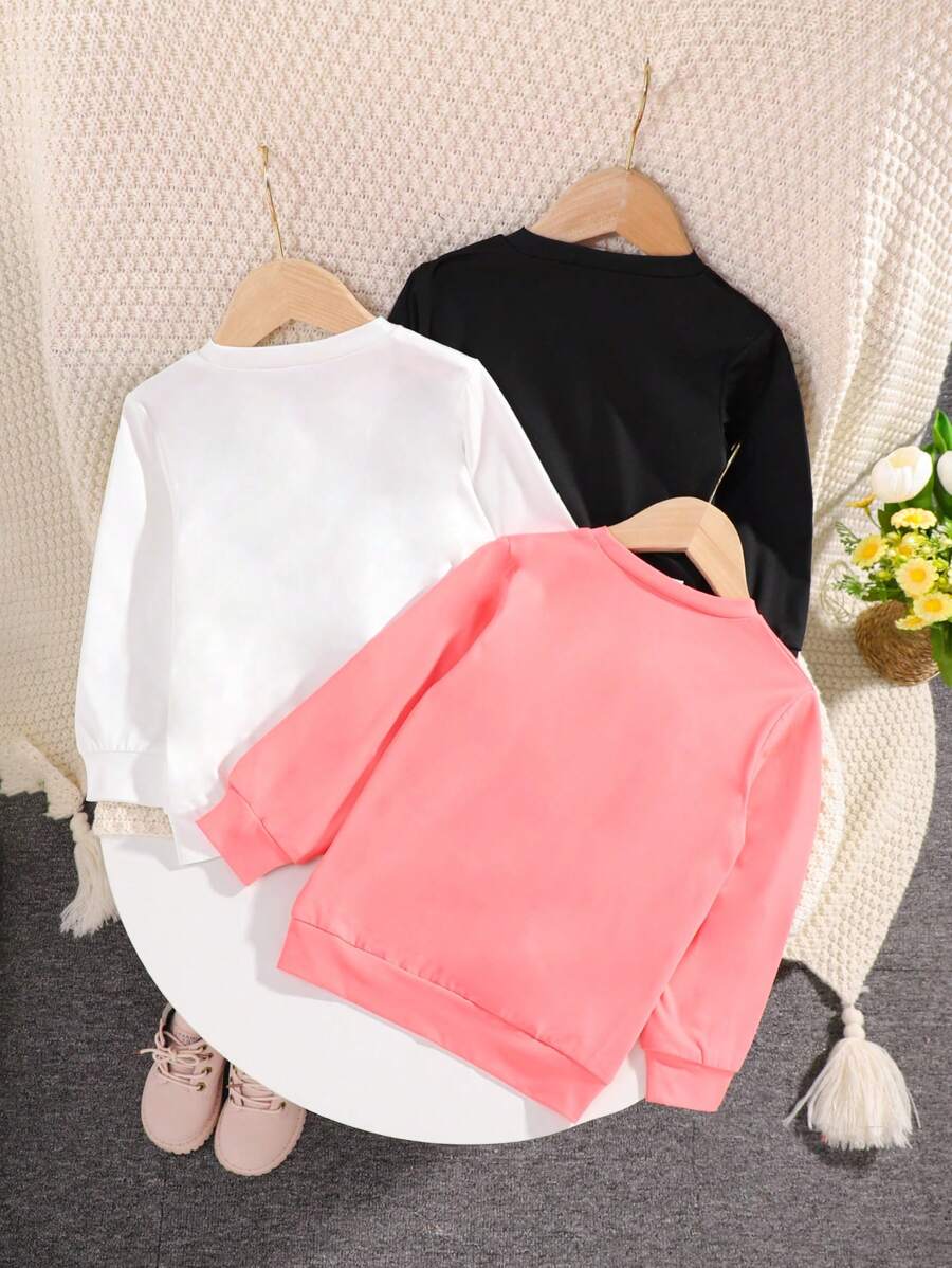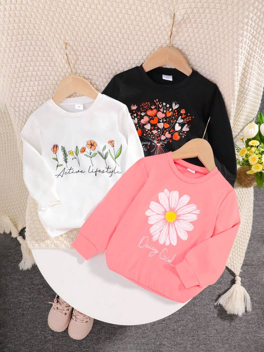 / 3pcs/Set Young Girl Crew Neck Floral Print Long Sleeve T-Shirts, Spring Autumn New Children Casual Tops Multiple Colors