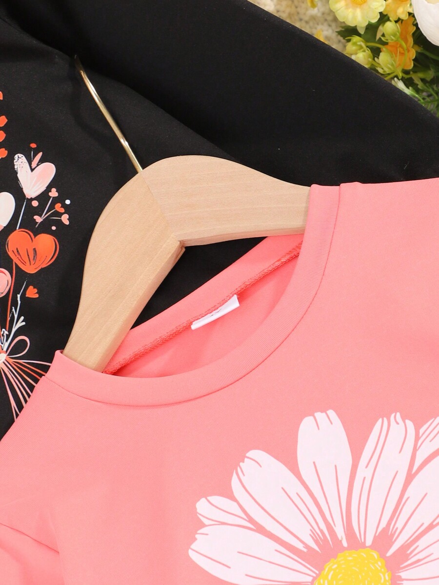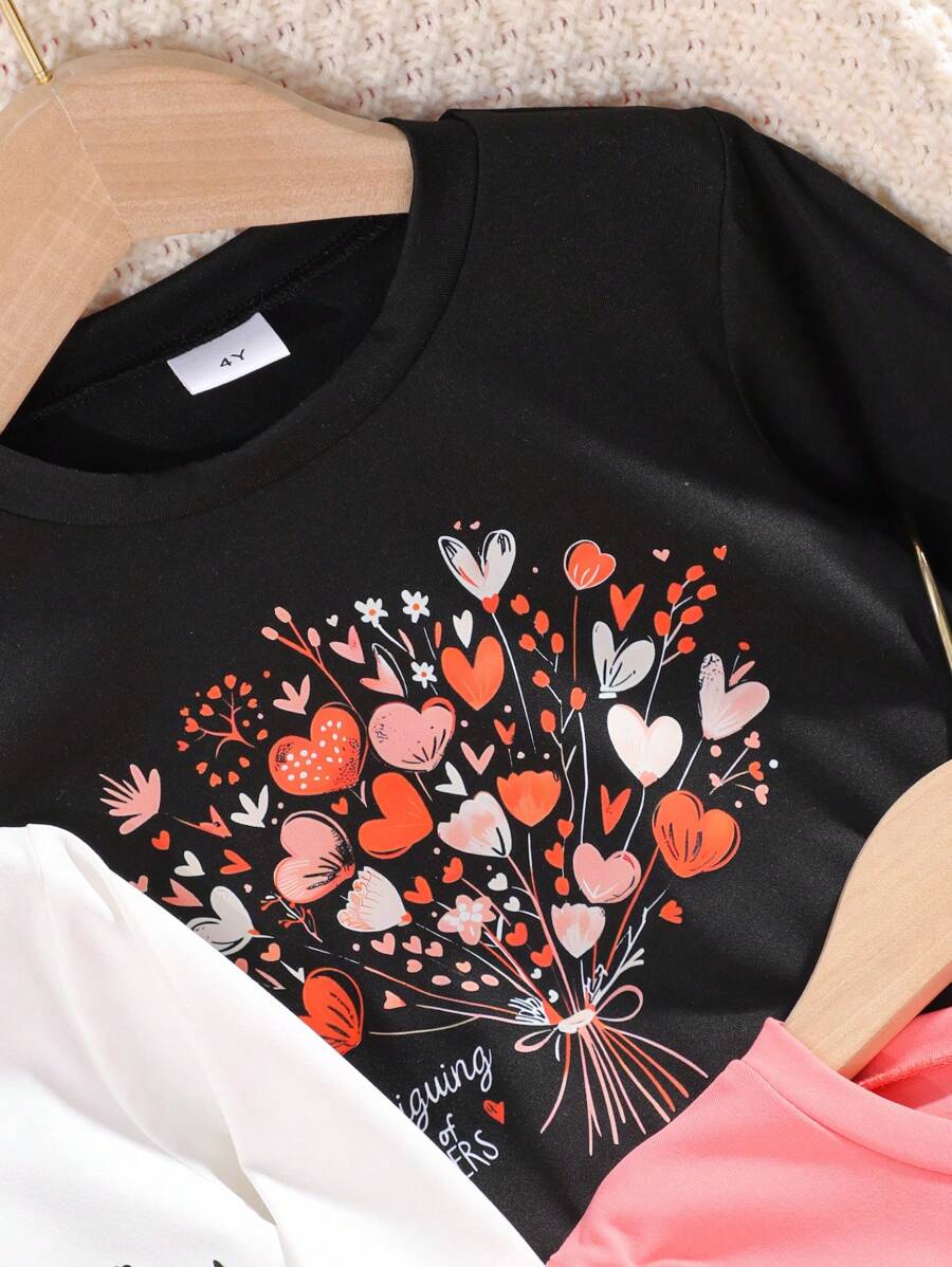 3pcs/Set Young Girl Crew Neck Floral Print Long Sleeve T-Shirts, Spring Autumn New Children Casual Tops Multiple Colors quantity