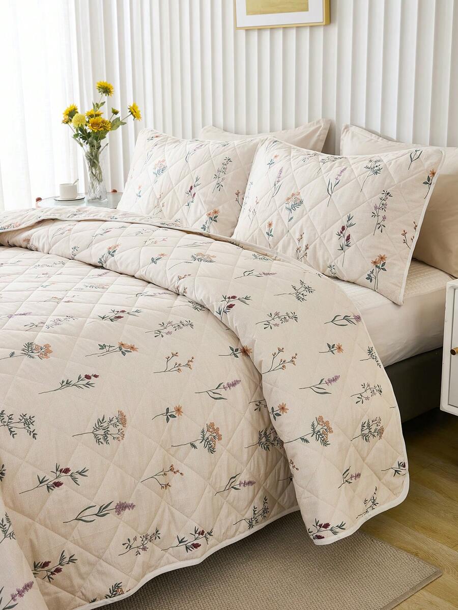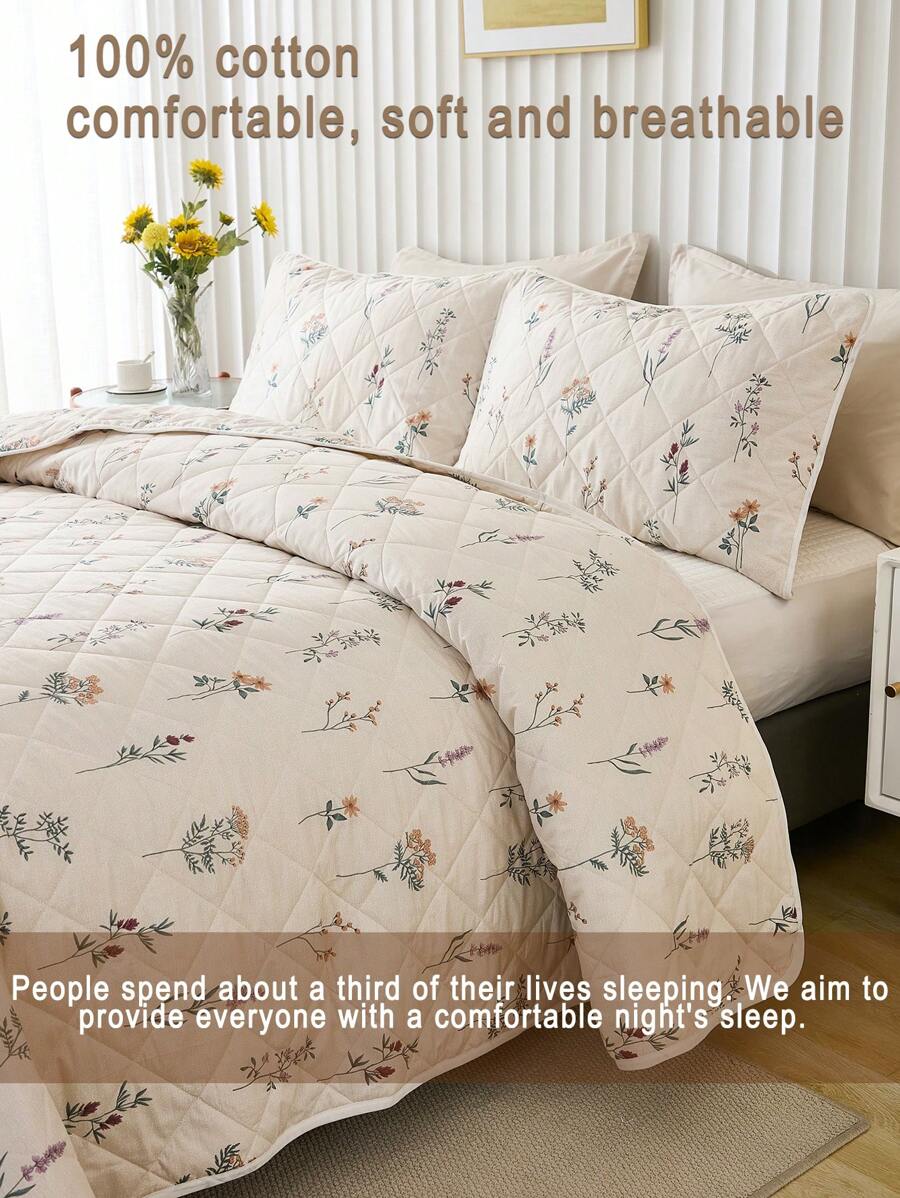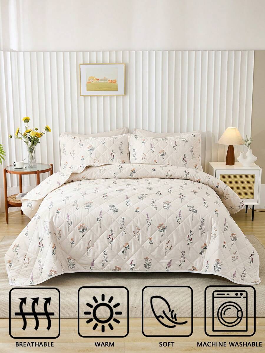 3pcs Soft & Breathable Floral Printed Quilt Set (1pc Quilt Cover + 2pcs Pillowcases), Suitable For All Seasons, Bedroom Decor quantity